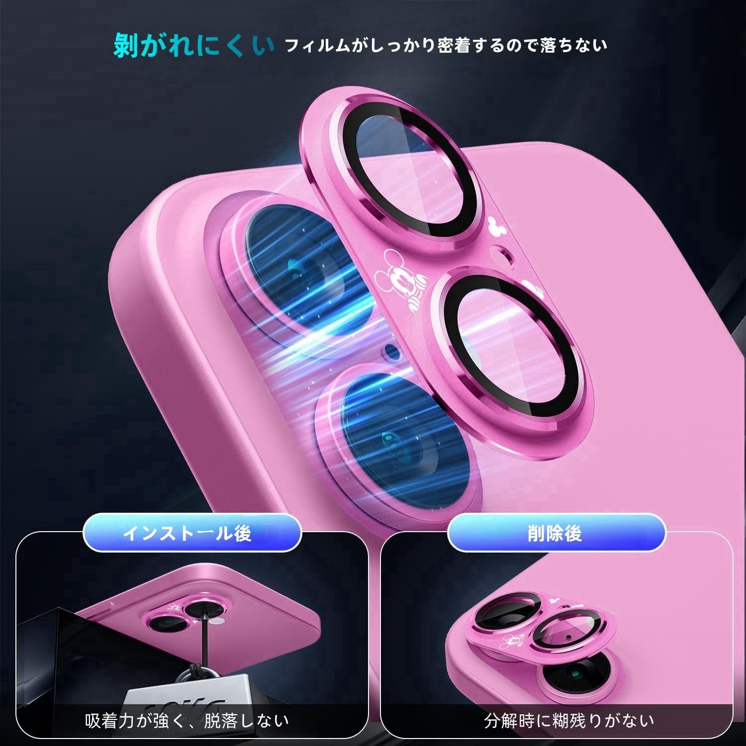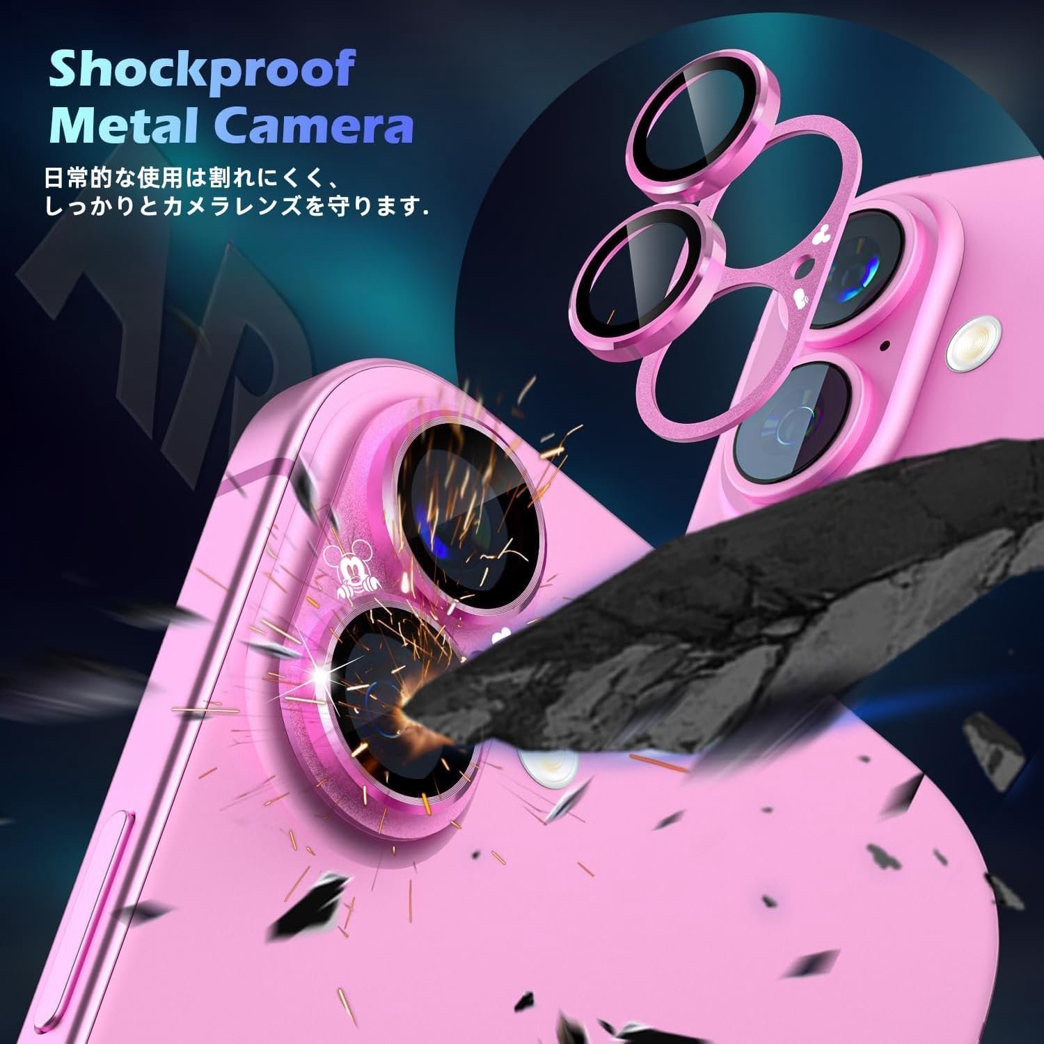 ミニーマウス カメラフィルム iPhone 16/16 Plus 用 カメラ保護 全面保護 9H強化ガラス [Aluminum Alloy Integrity] iPhone 16/16 Plus、レンズカバー、耐衝撃、露出オーバー保護、