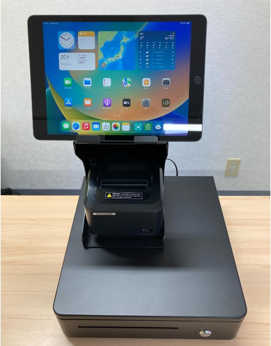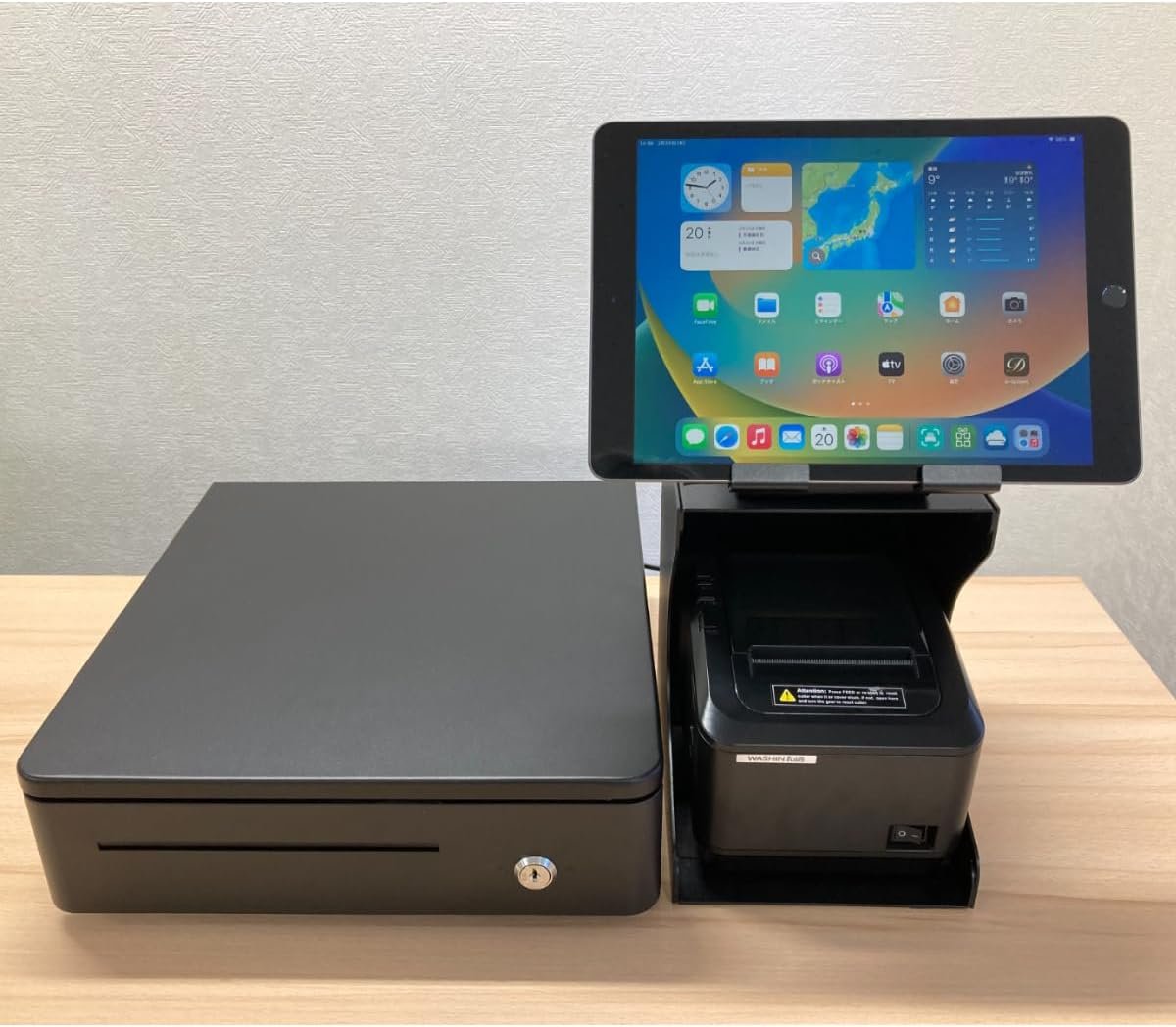 レシートプリンター、キャッシュドロアー、タブレットスタンドのPOSレジ業務を始めるのに便利なセットです。飲食店、レストラン、飲食店、飲食店、レストラン、クリニック、美容室、イベントなどのレシート印刷に最適です。 ローバーズ、スマシャッシュ、ユキレイなどの各種レジやサロンPOSなどに。