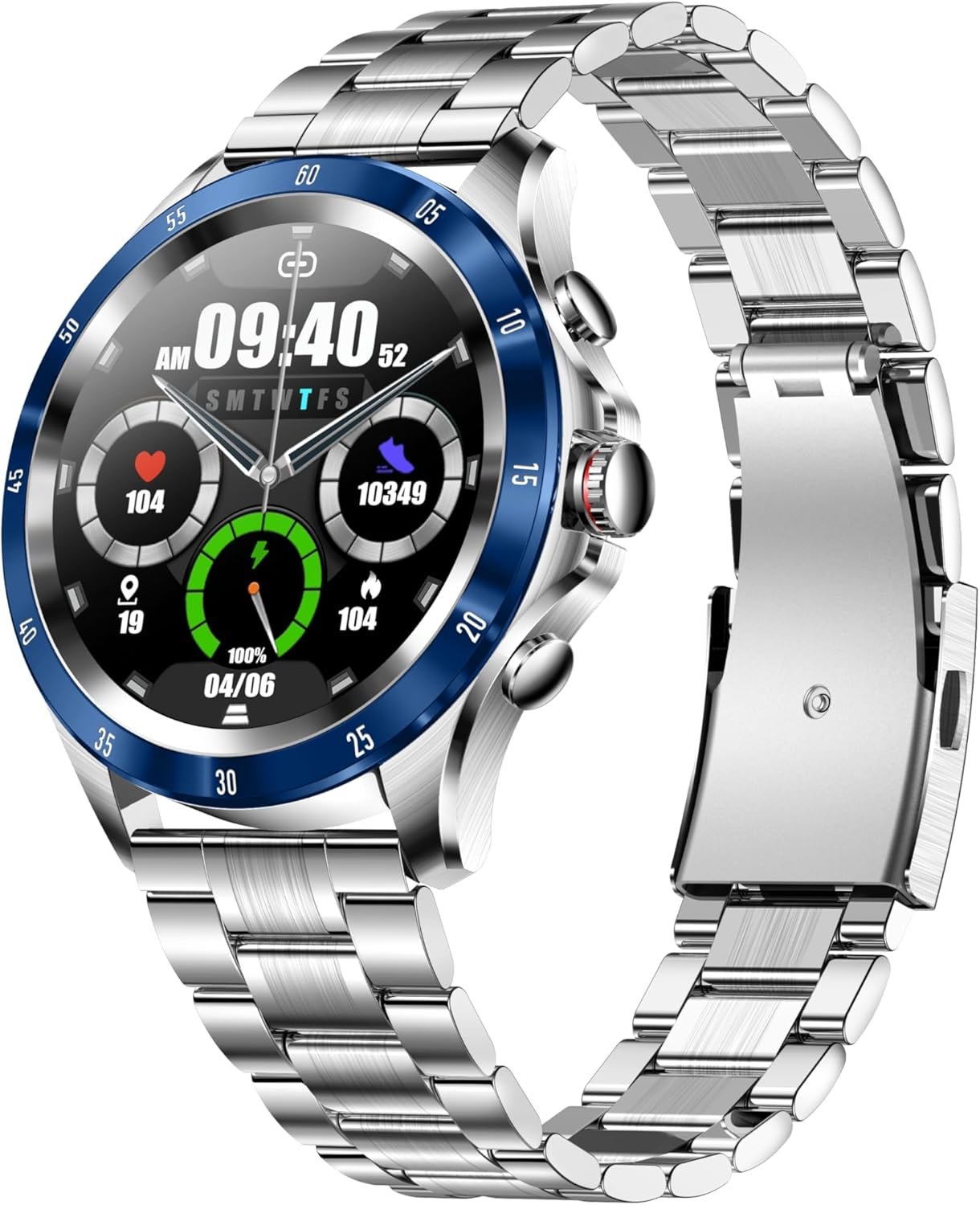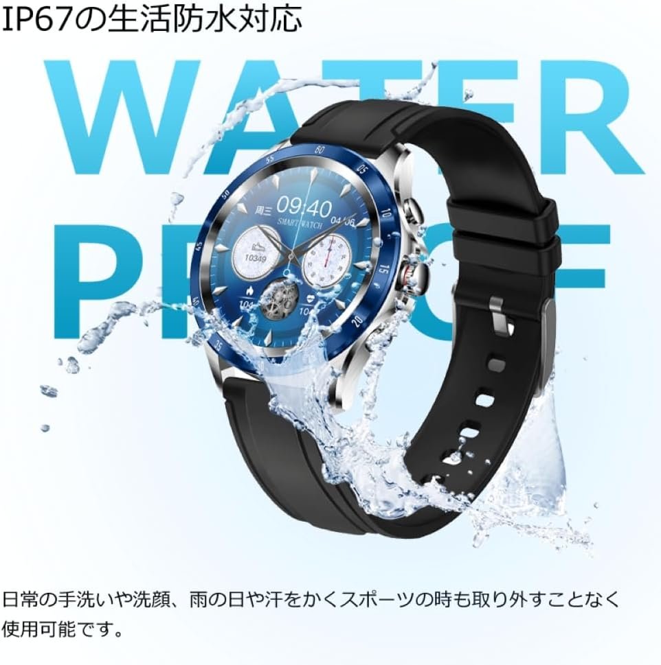 IMGテクノロジーNX1スマートウォッチメタル&ラバーバンドセット、1.32インチスクリーン、Bluetooth 5.0互換性、心拍数測定、マルチスポーツモード、防水(青)