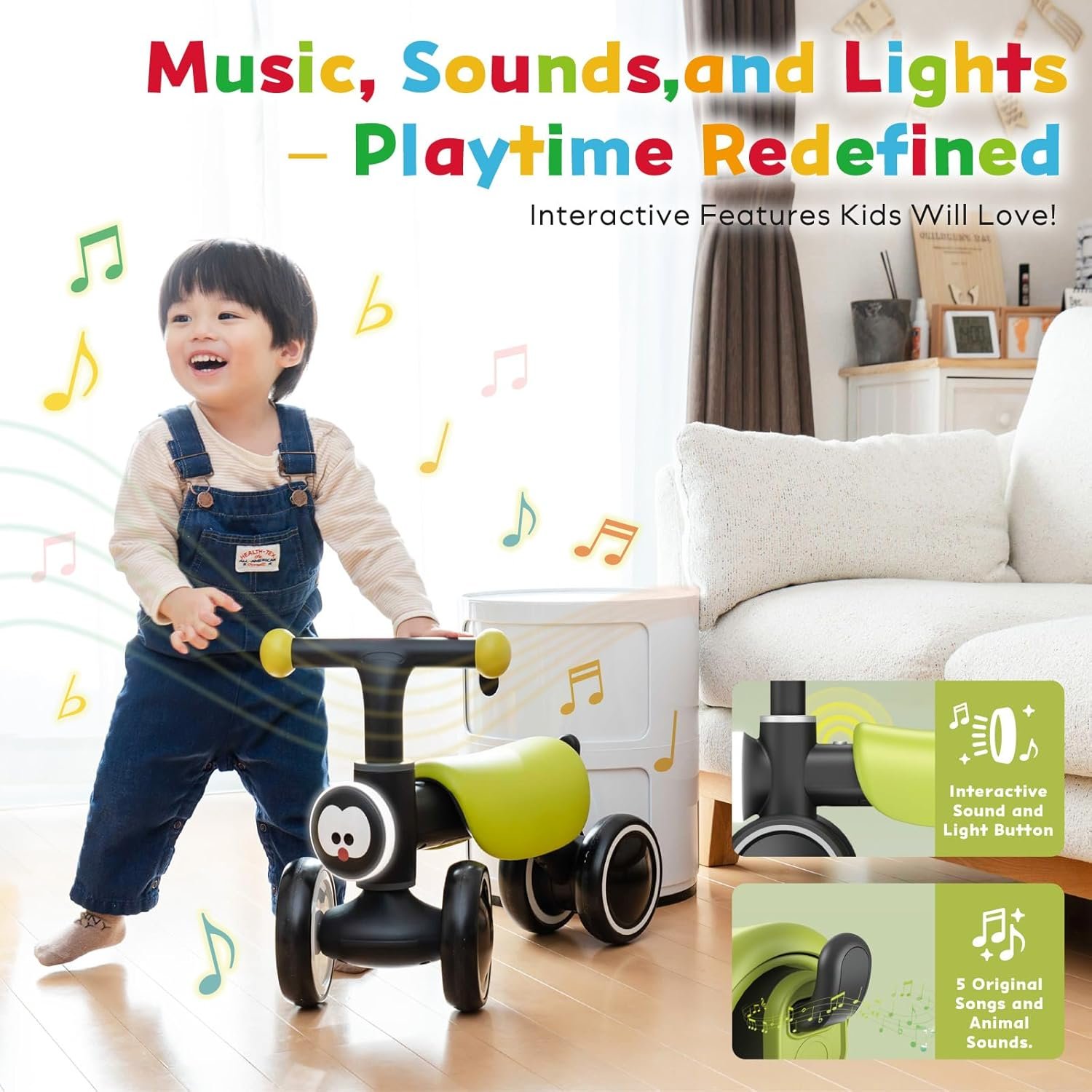 遊び心をプラスしたかわいいデザイン ちびっこライダーは、愛らしい動物モチーフのデザインで遊びながら発育を促し、お子さまの成長をサポートします。動物の鳴き声や音楽、LEDライトなど、お子様の想像力を広げる工夫がいっぱいです。ボタンを押すと前面が光り、ランダムに音楽が再生されます。豊富な機能で、お子様が長く楽しめるように設計されています。時の成長とともに大切にされるたくさんの楽しい思い出