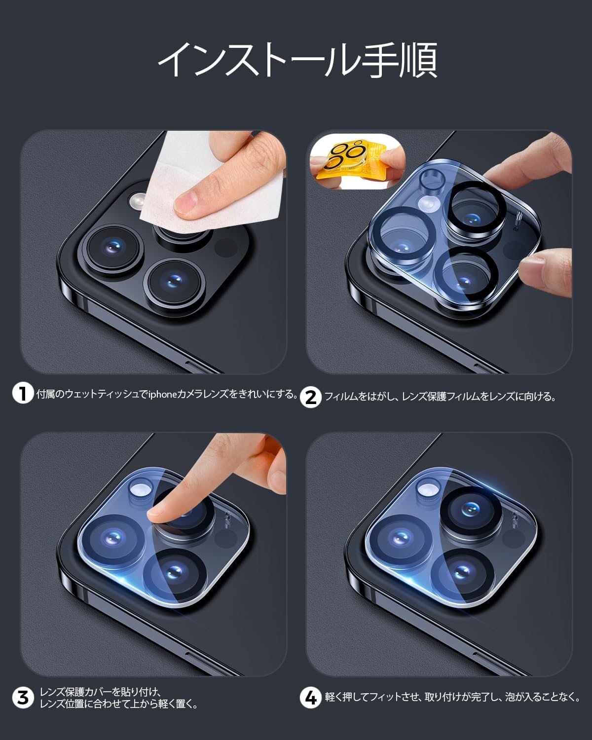 【超高硬度9Hガラス・耐傷性】9H強化ガラスで作られたこのレンズプロテクターは、傷、摩耗、衝撃から一貫した保護を提供します。疎油性層が水、油、ほこり、指紋を防ぎます。携帯電話のレンズを常に HD の鮮明さとクリーンな状態に保ちます。