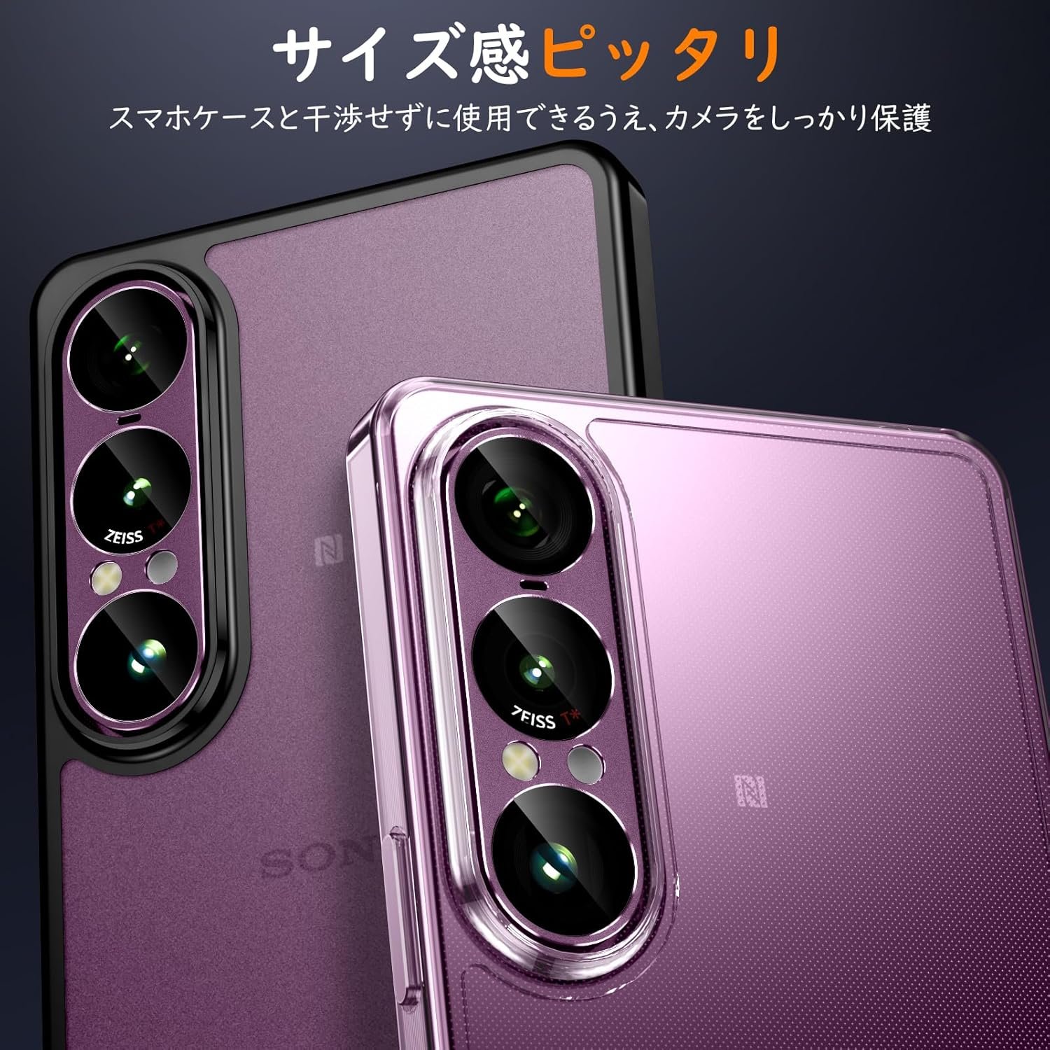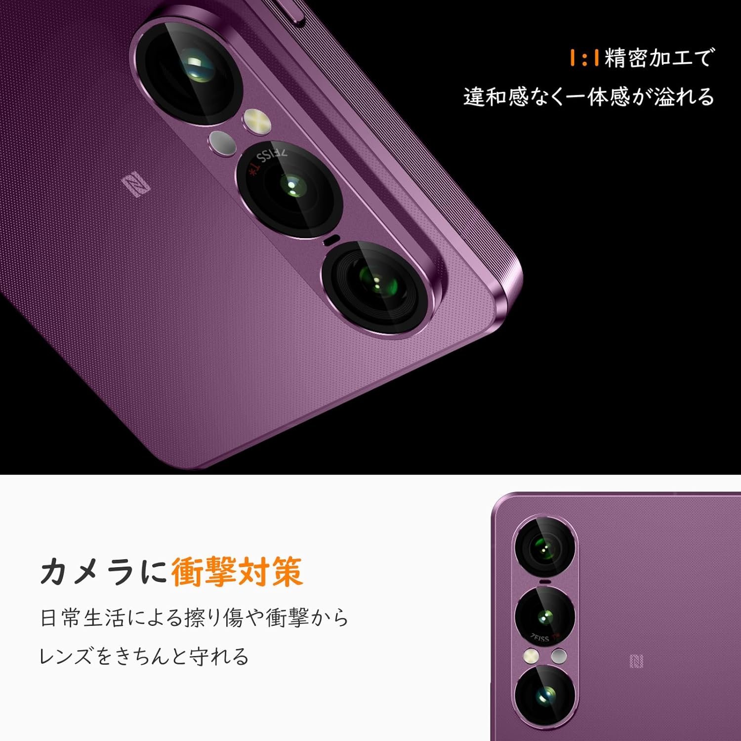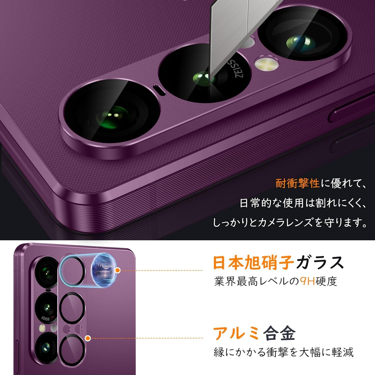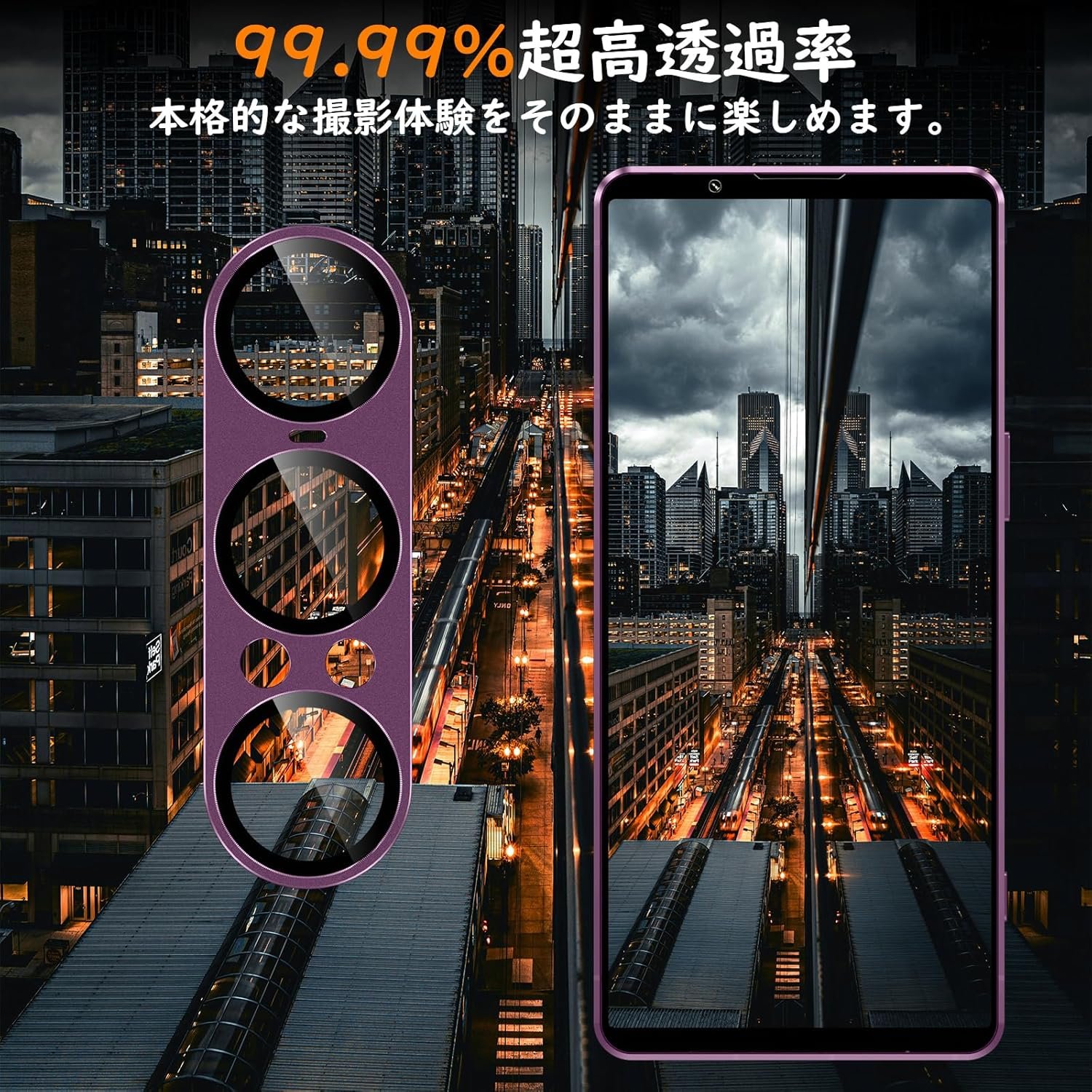 カメラフィルム Xperia 1 VII 9H 強化ガラス アルミニウム合金 耐衝撃 全面保護レンズカバー 超高透過率 カメラカバー 指紋防止一体型プロテクター パープル