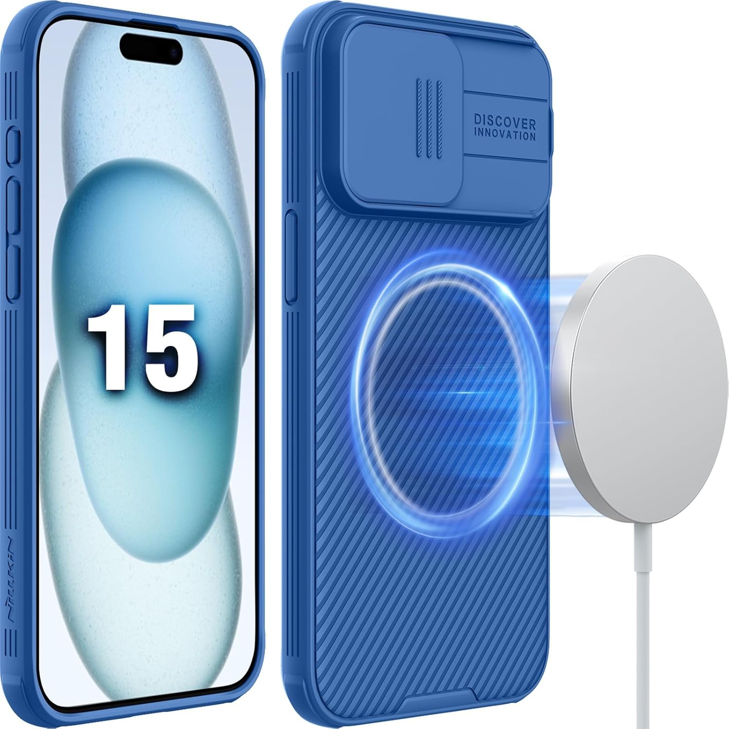 [Compatible with MagSafe] Nillkin iPhone 15ケース、レンズ保護、ビルトインマグネット、カメラレンズ保護、スライドタイプ、15カバー