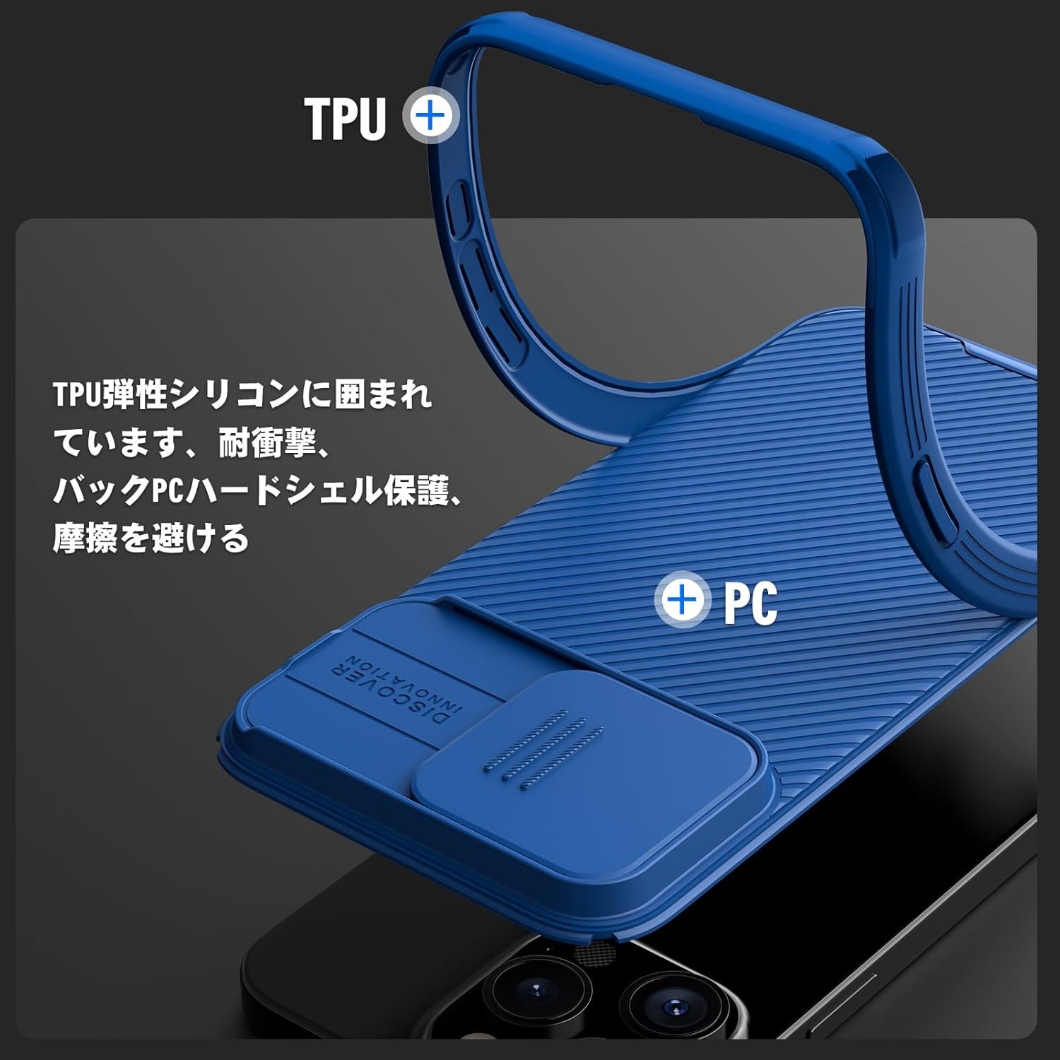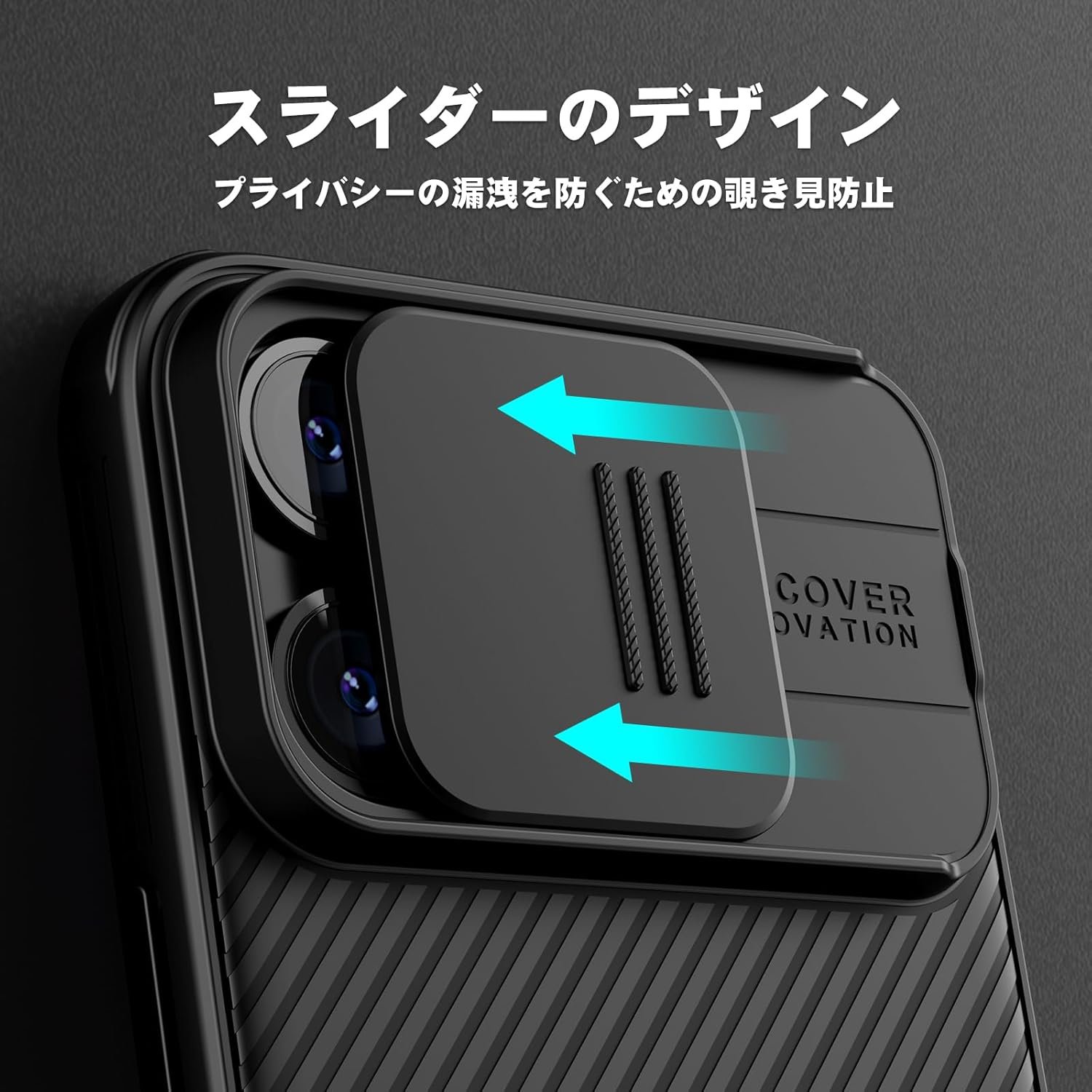 【スライダーデザイン】Nillkin独自のデザインのiPhone 15 proケースは特許取得済みのカメラレンズスライダー保護デザインを採用し、レンズを完全に保護します。覗き見を防止してプライバシー漏洩を防ぐ