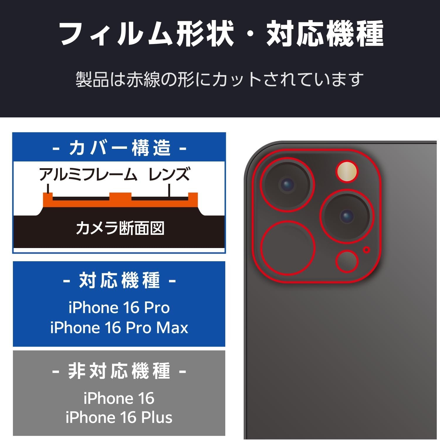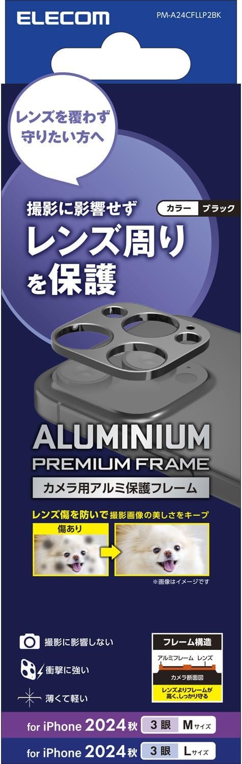 Elecom PM-A24CFLLP2BK用iPhone 16 Pro / iPhone16 Pro Maxカメラレンズカバープロテクターカメラブラックの周りのアルミニウムレンズフレーム保護