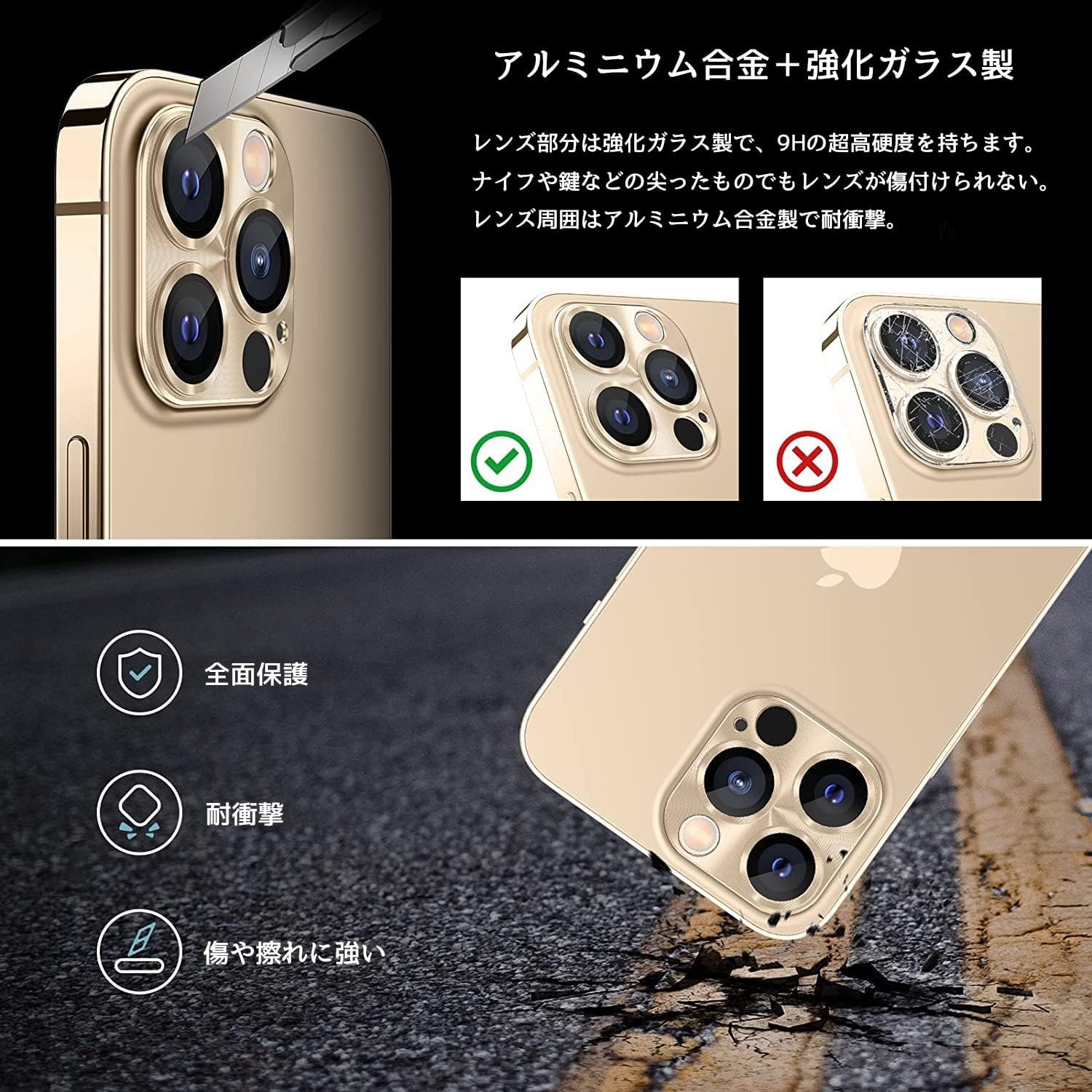 iPhone 13 Pro/iPhone 13 Pro Maxカメラフィルム用iPhone 13 Pro/iPhone 13 Pro Max Camera Protective Film Shockproof過剰露出アルミニウム合金カメラ(金)