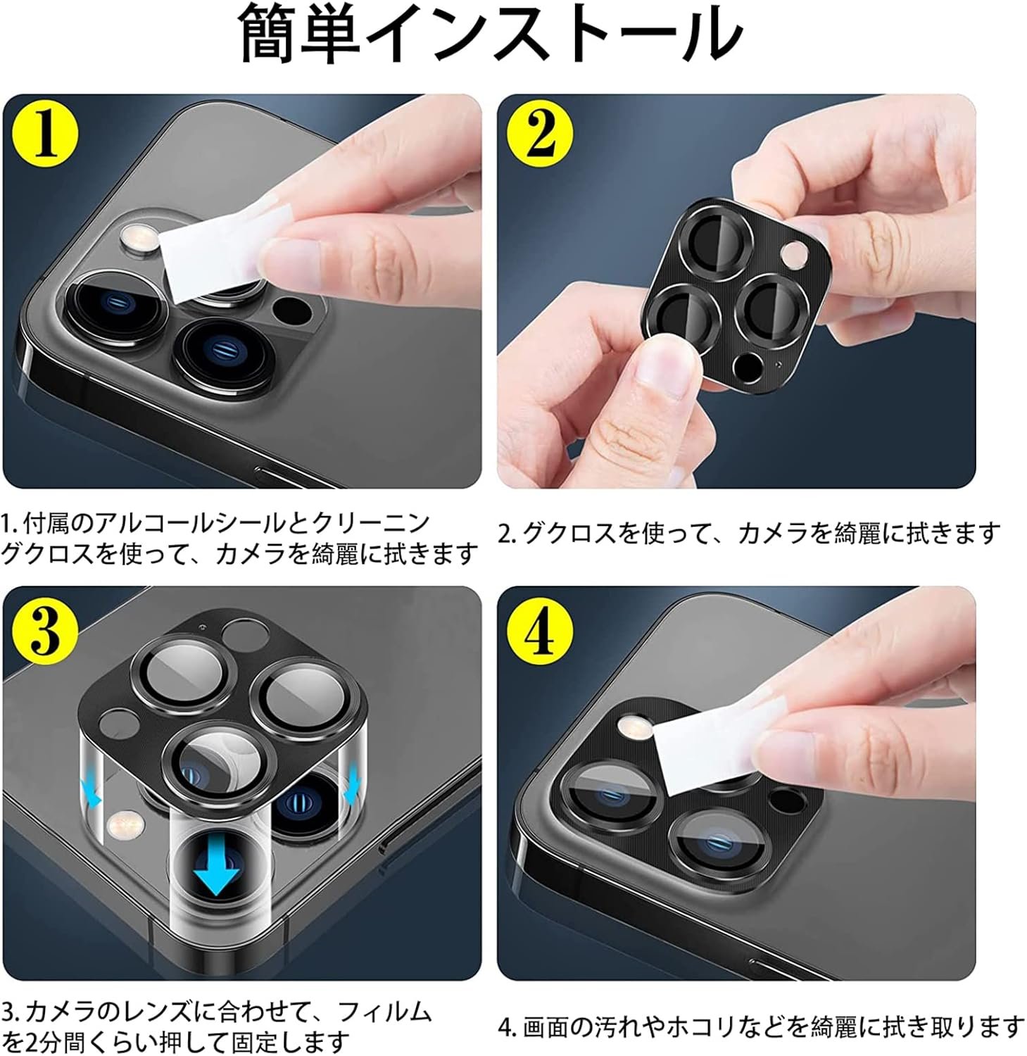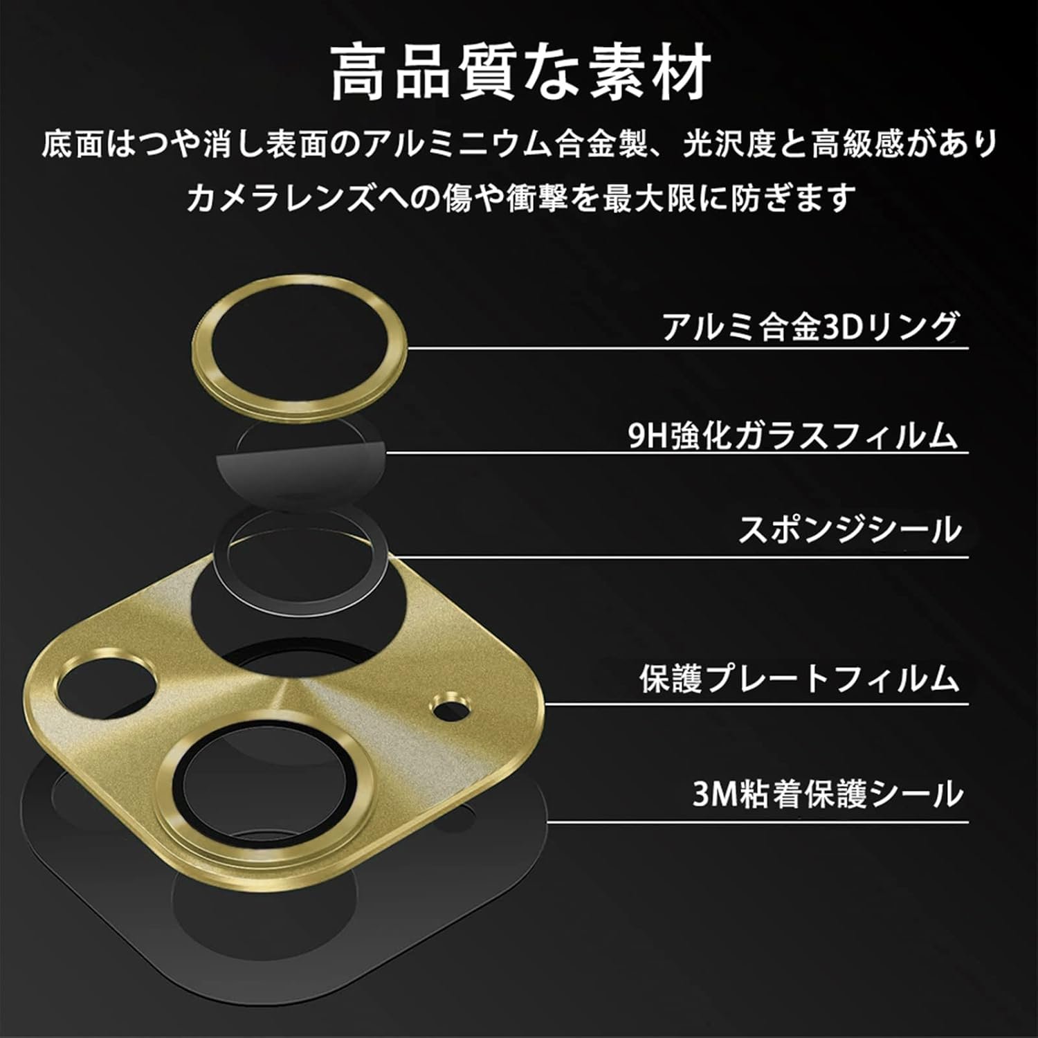 高インパクトアルミニウム合金と9H強化ガラスで作られた3D統合フル保護タイプ。レンズは完全に保護されています。インストール後、カメラのレンズ部品が傷を心配することなくデバイスに完全に取り付けられていることを知って、安心して使用できます。
