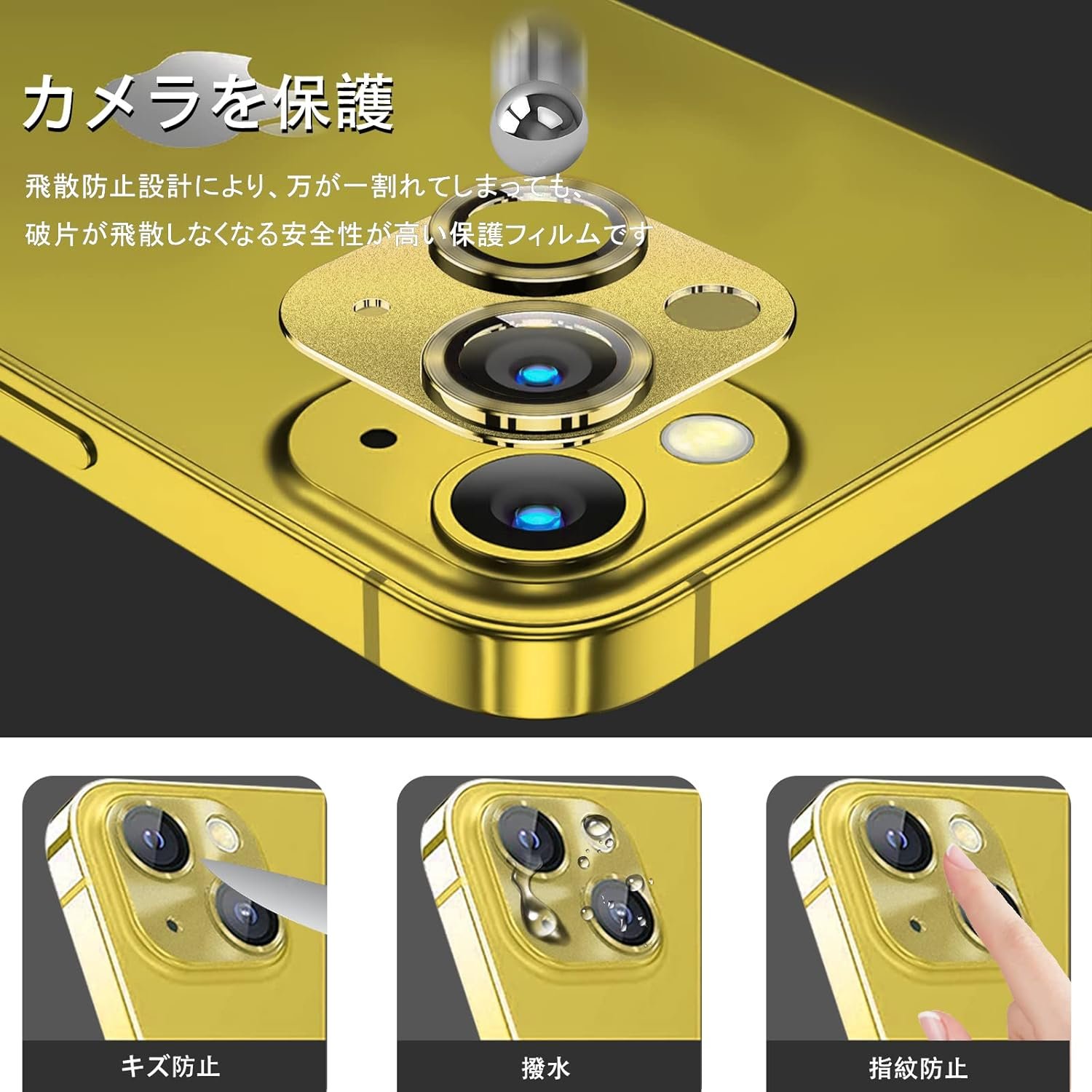 (カメラの保護)カメラの設計、アンチスクラッチよりも高い、iPhone 14 / iPhone 14プラスカメラレンズを衝撃や通常のダメージから保護します。携帯電話を落とすと、保護フィルムは側面からの衝撃を吸収し、カメラレンズへの傷や隆起からの最大限の保護を提供します。さらに、粉砕防止設計により、断片が粉砕されるのを防ぐ非常に安全な保護フィルムになります