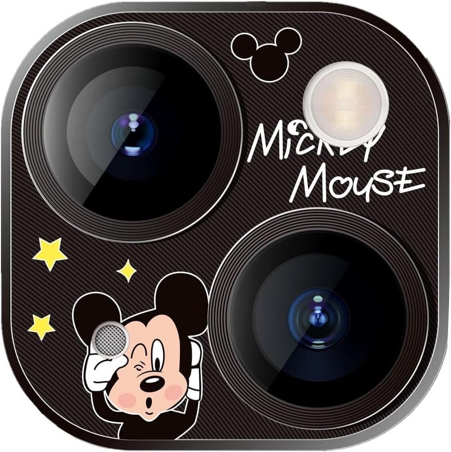 iPhone 15カメラカバー、ディズニーiPhone 15 Plus、カメラレンズ保護、ミッキーアルミニウム合金 +強化ガラス3D統合フルボディ保護、カメラプロテクター、ディズニーiPhone 15プラス、カメラレンズ