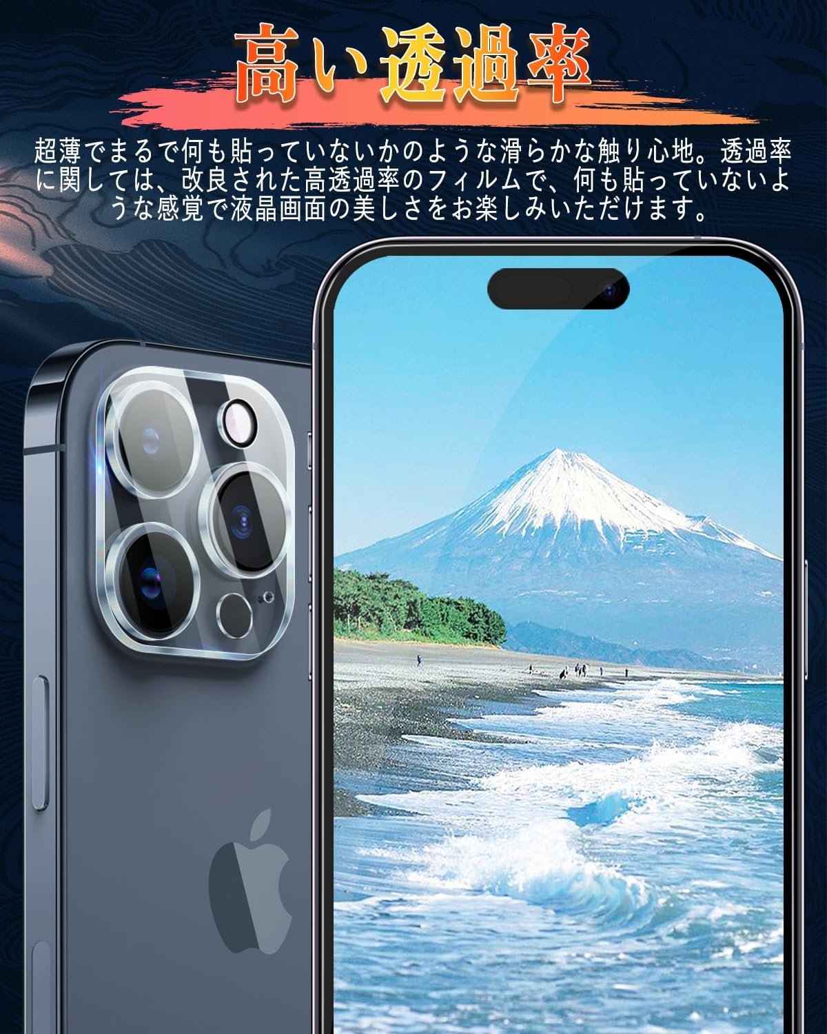 指紋とグリースの汚れに耐性がある:指紋マークから保護する老化したコーティングは、このカメラプロテクターに適用されています。プロテクターは、オイル、指紋などが執着することを困難にする特別なコーティングで処理されています。それに固執する汚れは、穏やかに拭くことで即座に取り除くことができます。
