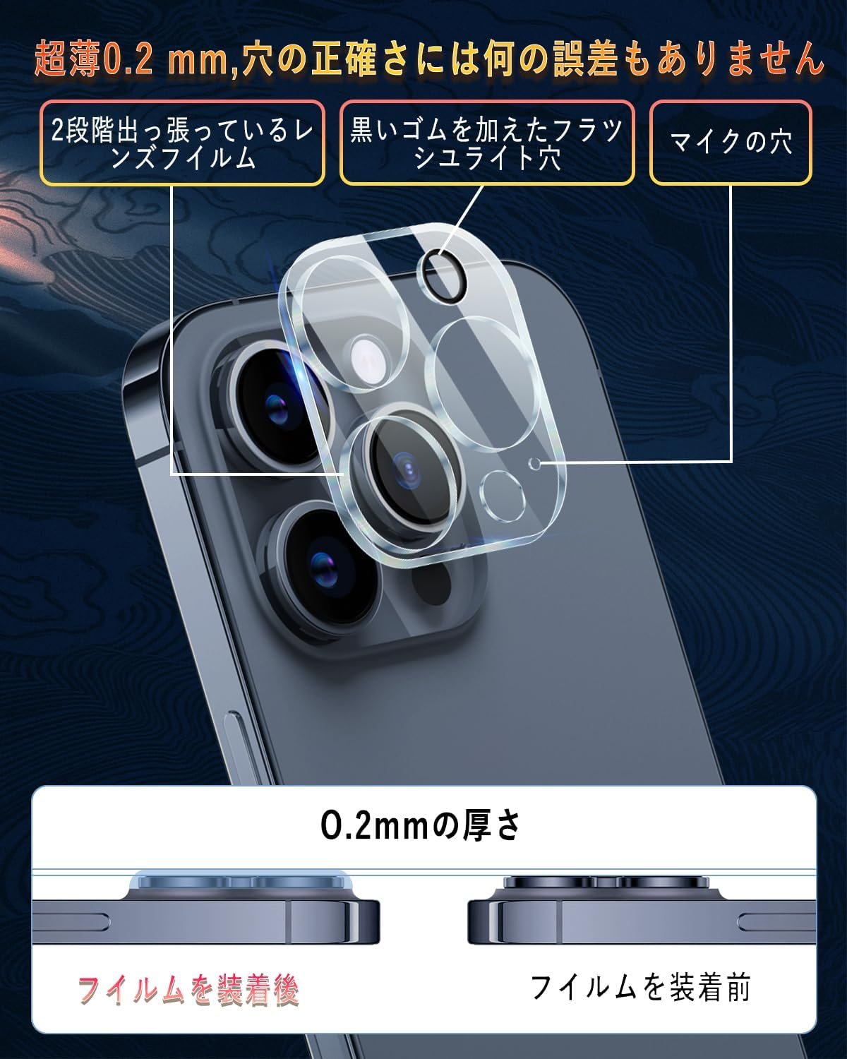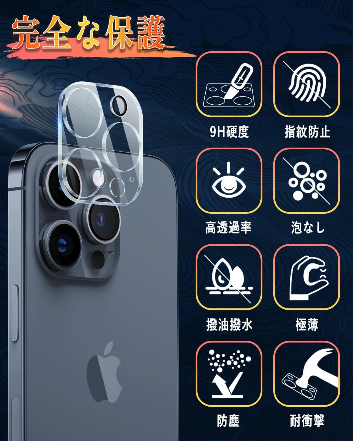 iPhone 15 ProおよびiPhone 15 Pro Maxのカメラレンズプロテクターは、2つのセットを保護し、すべてのレンズとカメラ全体を保護し、AGCによって日本で作られた材料、高い明快さ、泡、ウルトラの薄い材料を防ぎます
