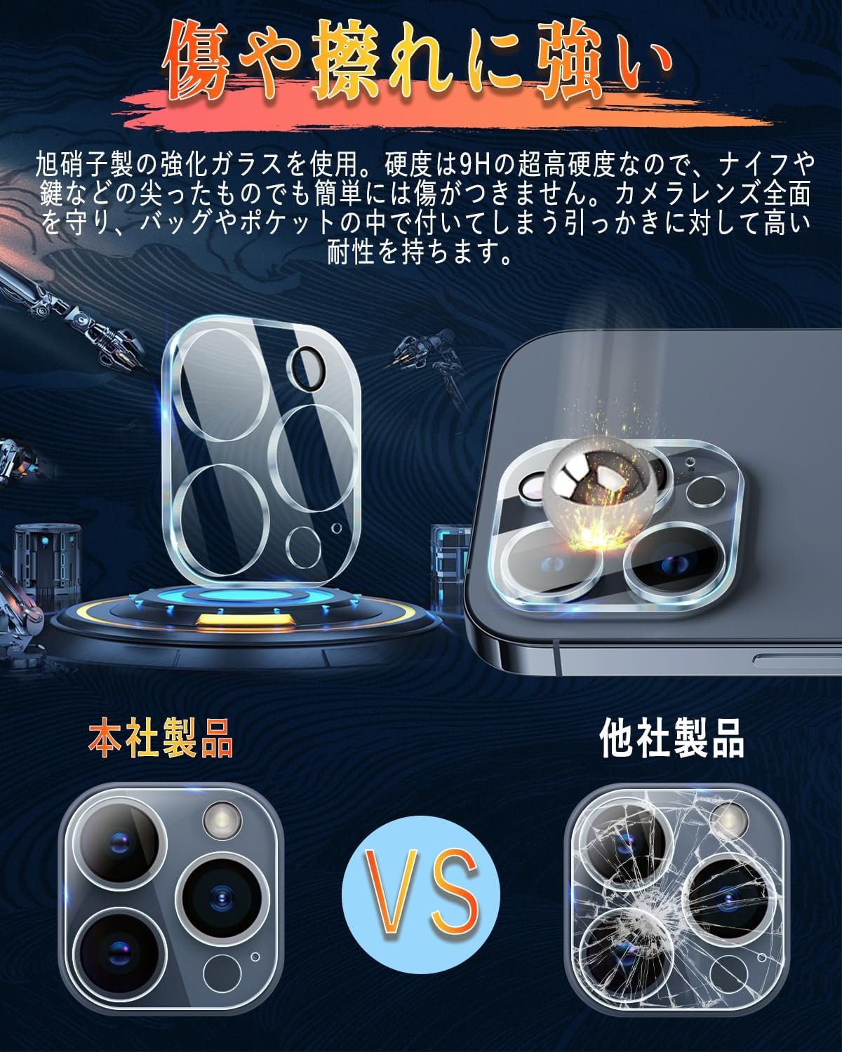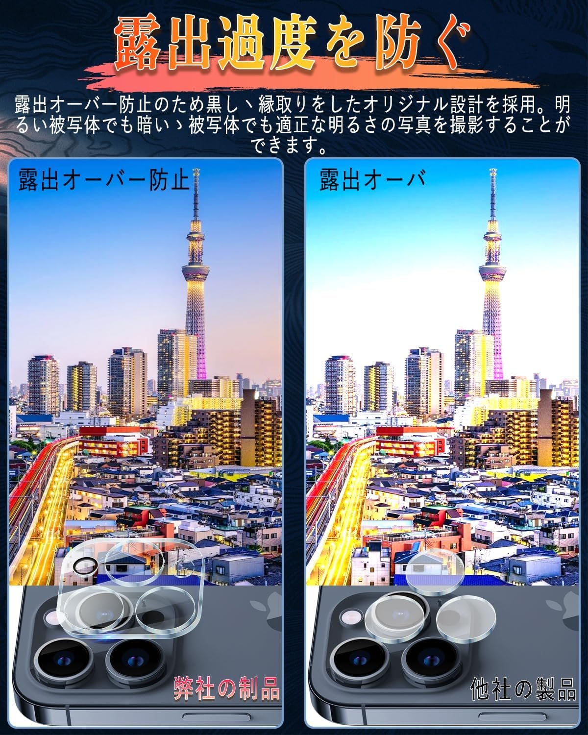 卓越した9時間の硬度、粉砕プルーフ:このレンズプロテクターは、9時間の表面硬度を誇っています。カメラに摩擦や傷に対する堅牢な保護を提供します。ナイフやキーなどの鋭いオブジェクトであっても、簡単に傷を付けません。高度な安全性を提供します。ありそうもないイベントでは、プロテクターが破損すると、ガラスの破片は散乱しません。