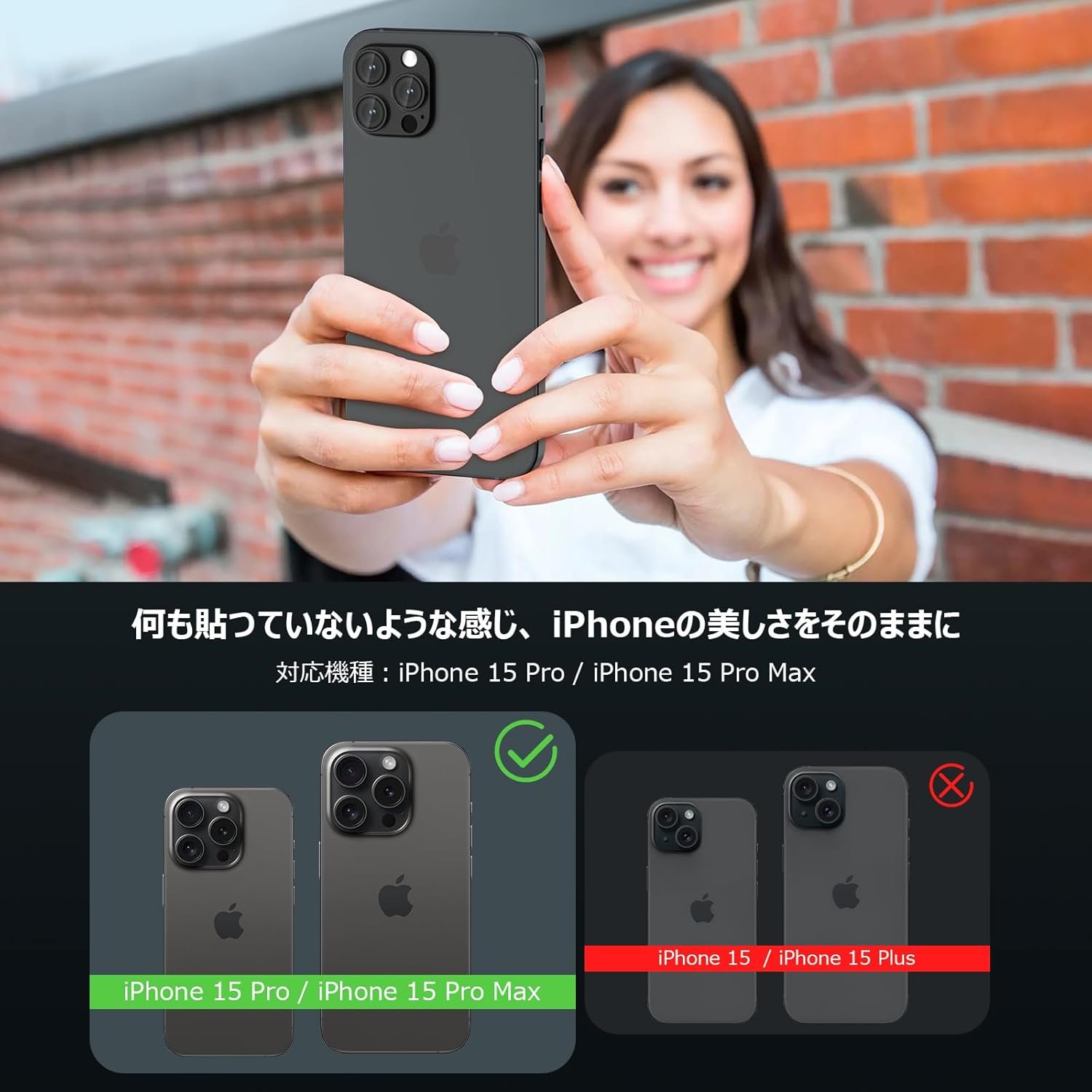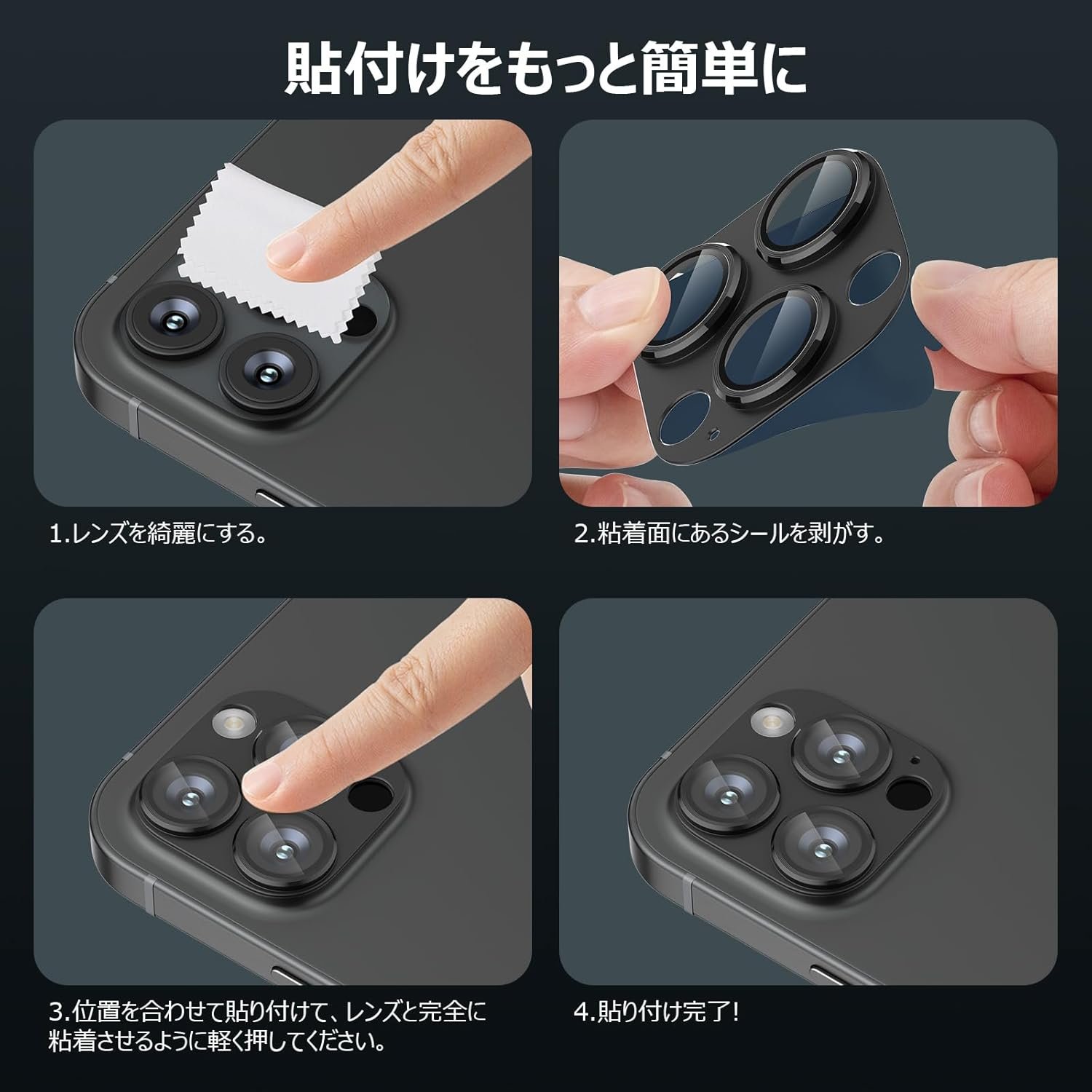互換性のあるモデル:iPhone 15 Pro / iPhone 15 Pro Maxのみ、レンズ保護フィルム。