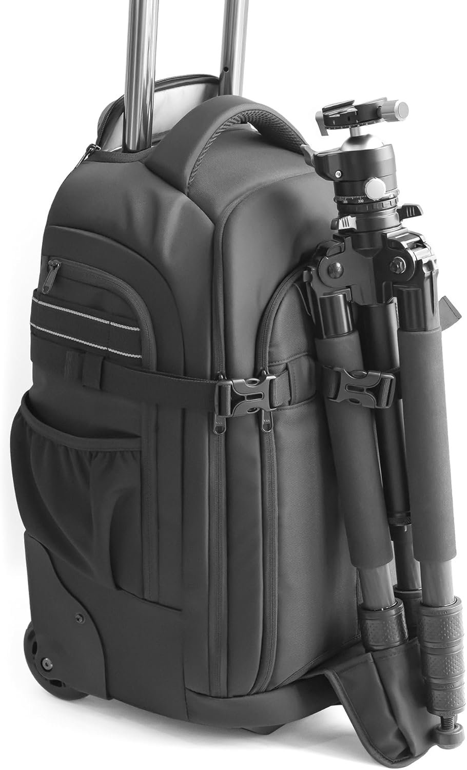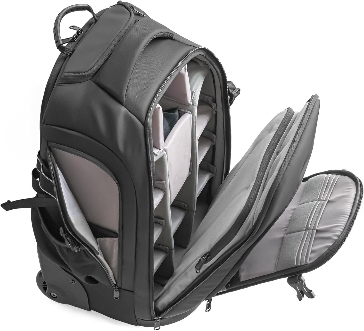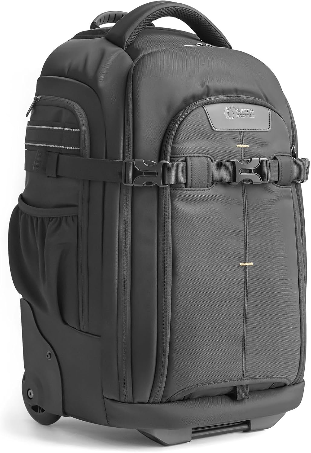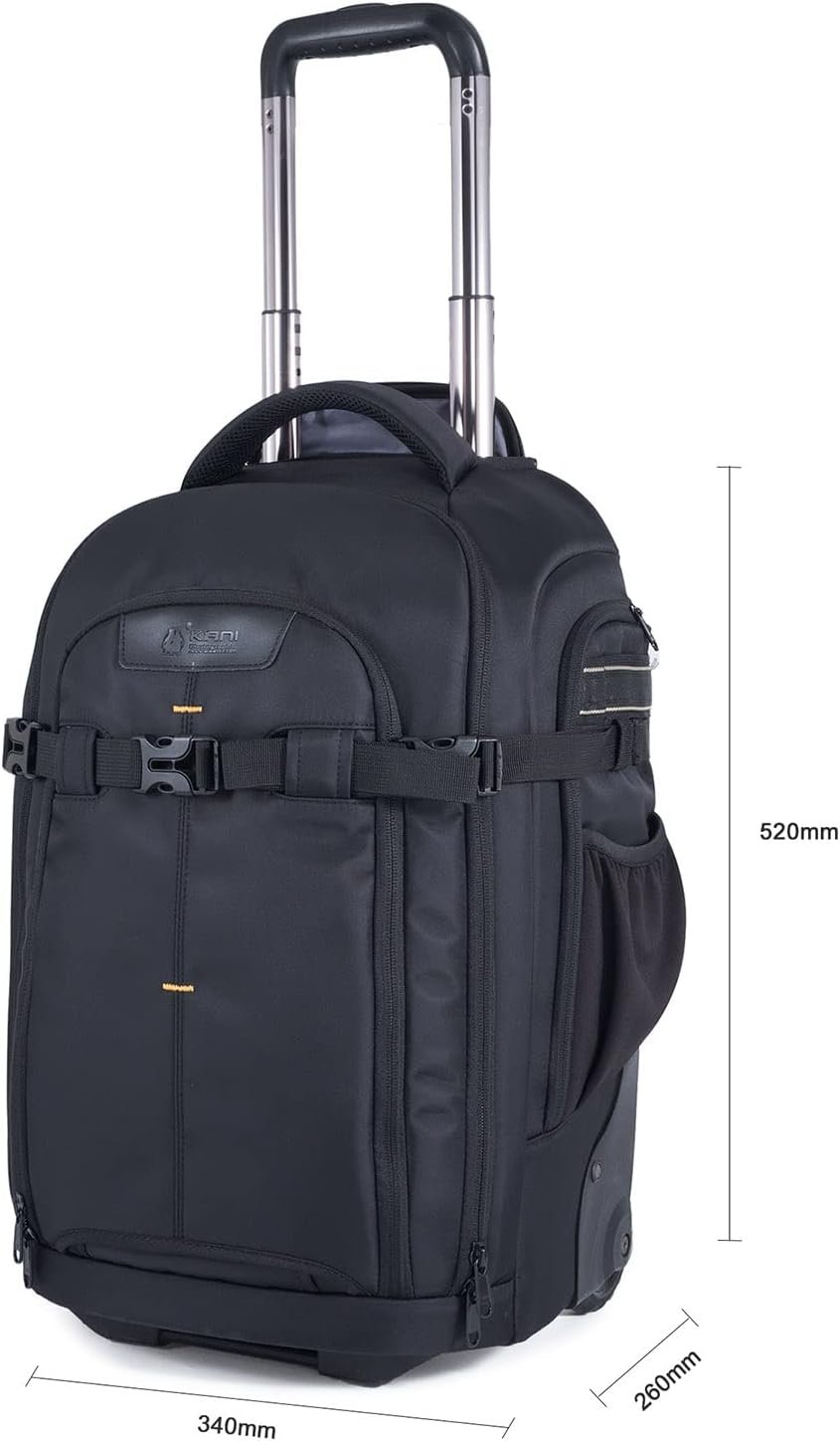 Kani TC-020 800688カメラバッグ、ブラック、ローリングバックパック、容量7.1 gal(23 L)、外部寸法:13.4 x 10.2 x 20.5インチ(34 x 26 x 52 cm)、キャスター、拡張可能なハンドル、調整可能