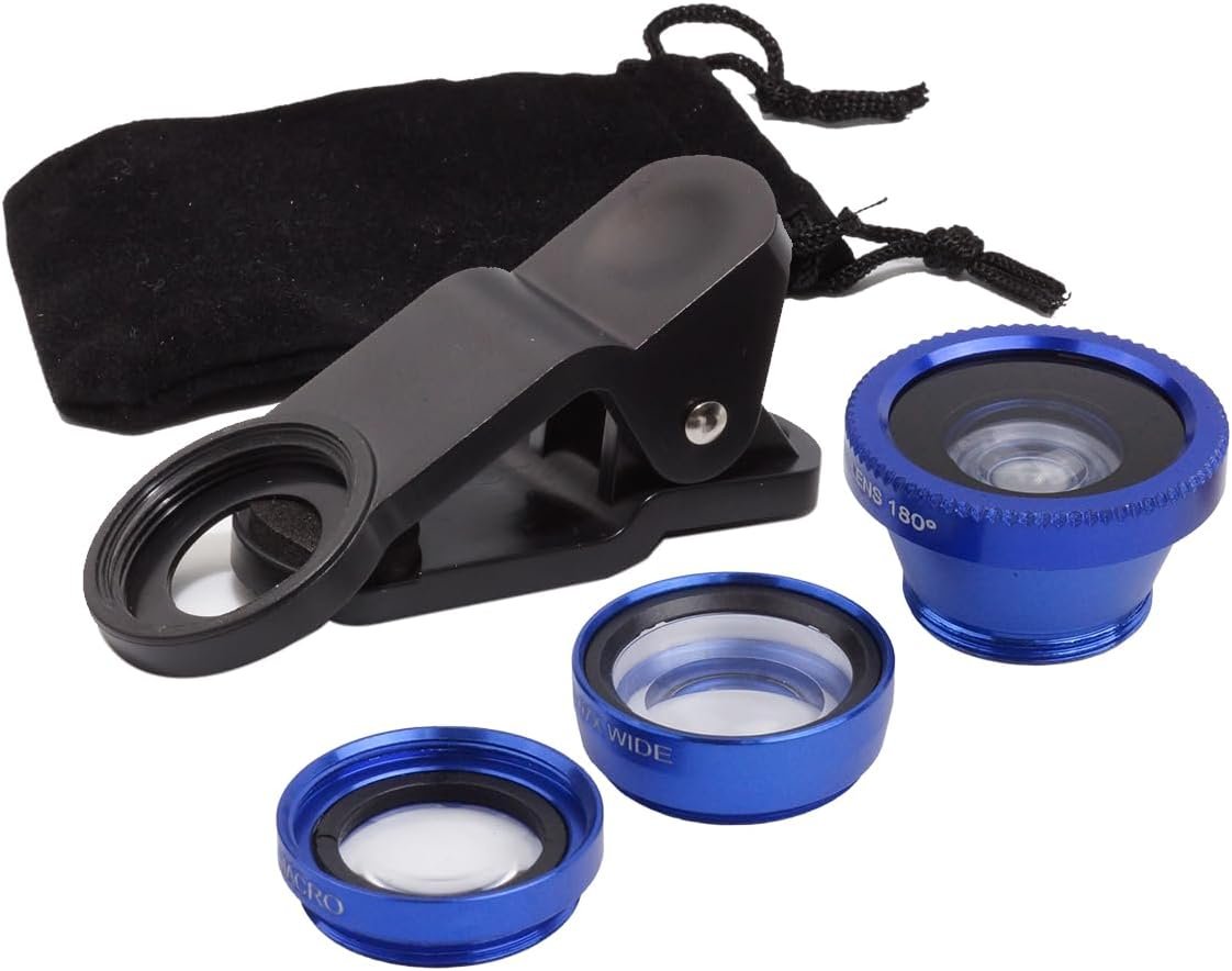 Prendre PR-SMAHOLENS-BLスマートフォンレンズ、セルラーレンズ、フィッシュアイ、ワイド、クローズアップカメラレンズ、3ピースセット、セルフィーレンズ、広角、アンドロイド(青)
