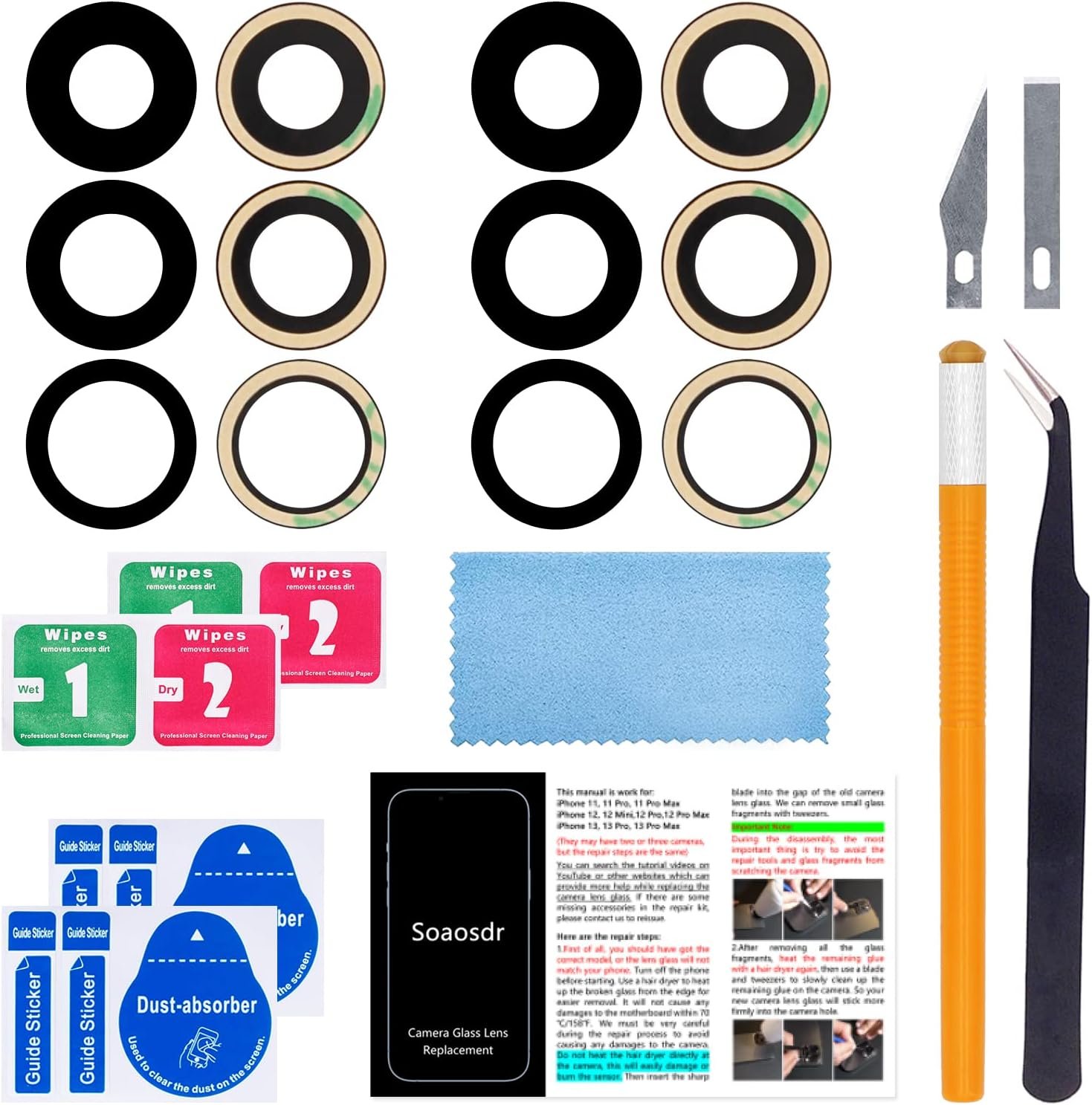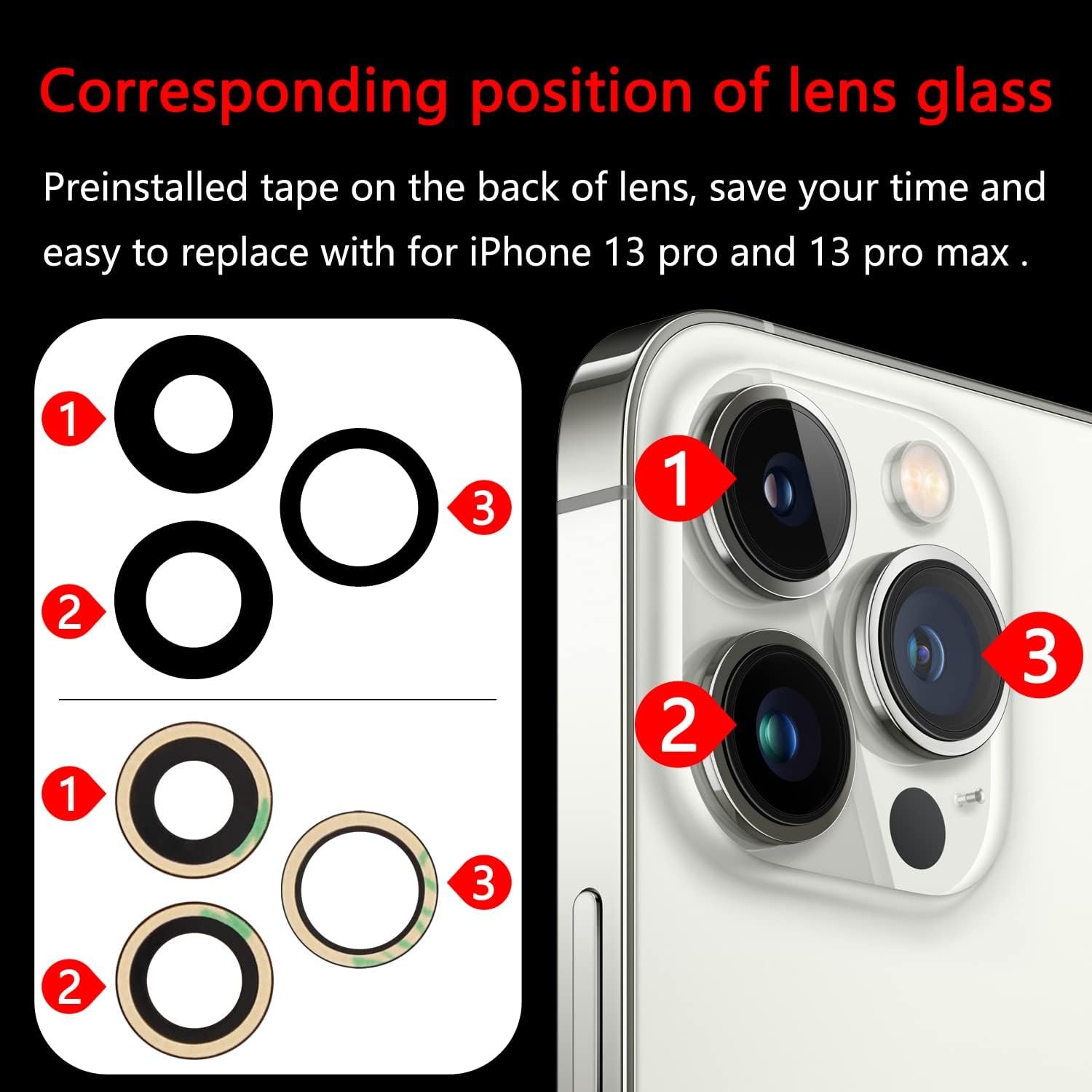 Soaosdr iPhone 13 Pro 6.1 インチおよび iPhone 13 Pro Max 6.7 インチ用リアカメラガラス交換用 2 個、接着剤 + 修理キット + 取り付け説明書がインストール済み