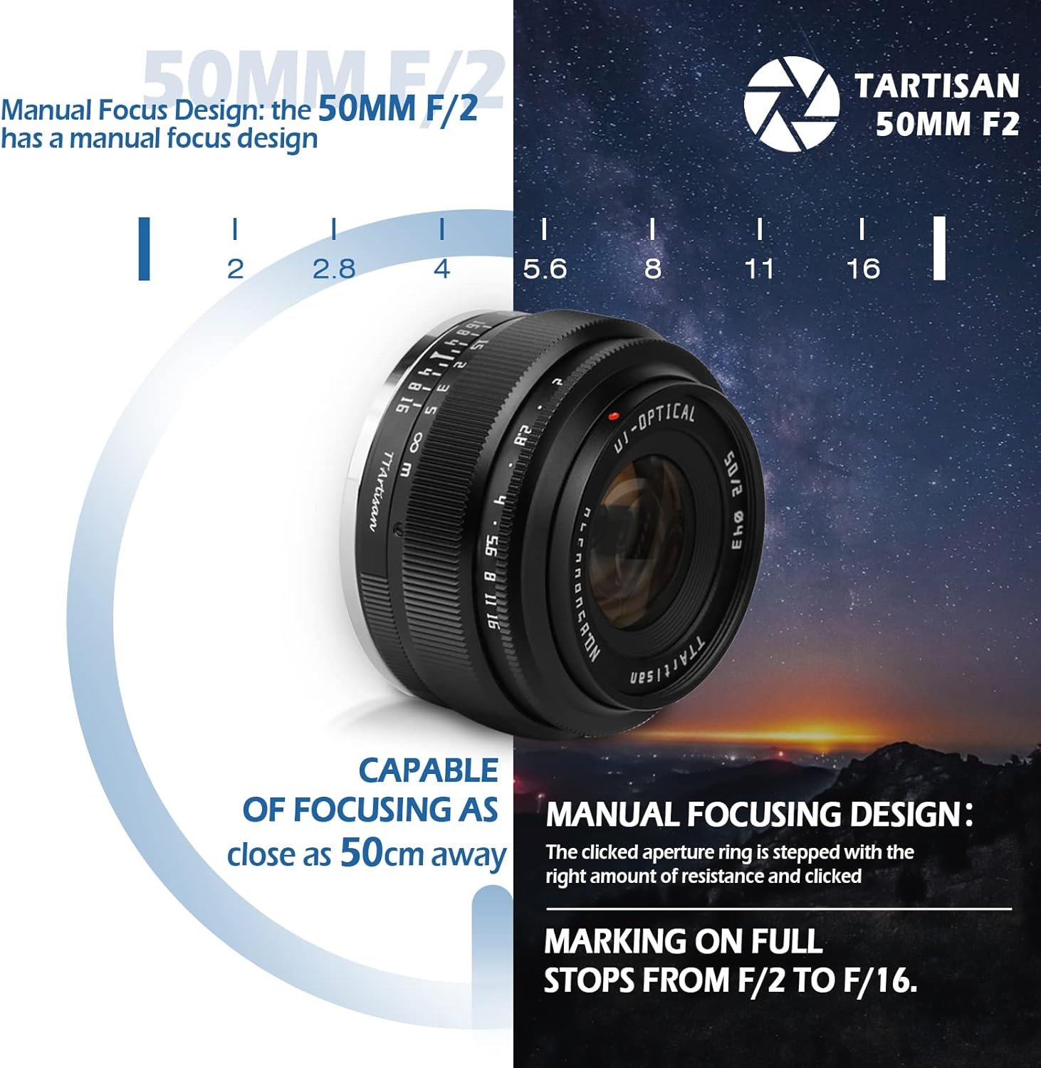 TTartisan 50mm F2 フルサイズマニュアルフォーカスレンズ Sony E マウントカメラ A7 A7II A7III A7R A7RII A7RIII A7RIV A7S A7SII A7SIII A9 A6400 A6000 A6600 A6100 A6500 A6300 など用 [2 year warranty. ]