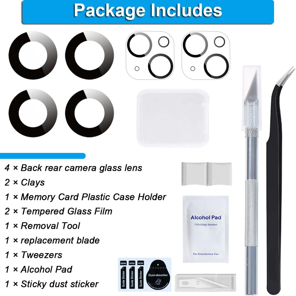 完全なパッケージ: 当社のパッケージには、プリインストールされた接着剤、取り外しツール、交換用ブレード、ピンセット、アルコールパッド、粘着ダストステッカーキット、粘土とカメラレンズガラスの交換など、携帯電話のカメラレンズガラスの修理に必要なものがすべて含まれています。 CFボックス