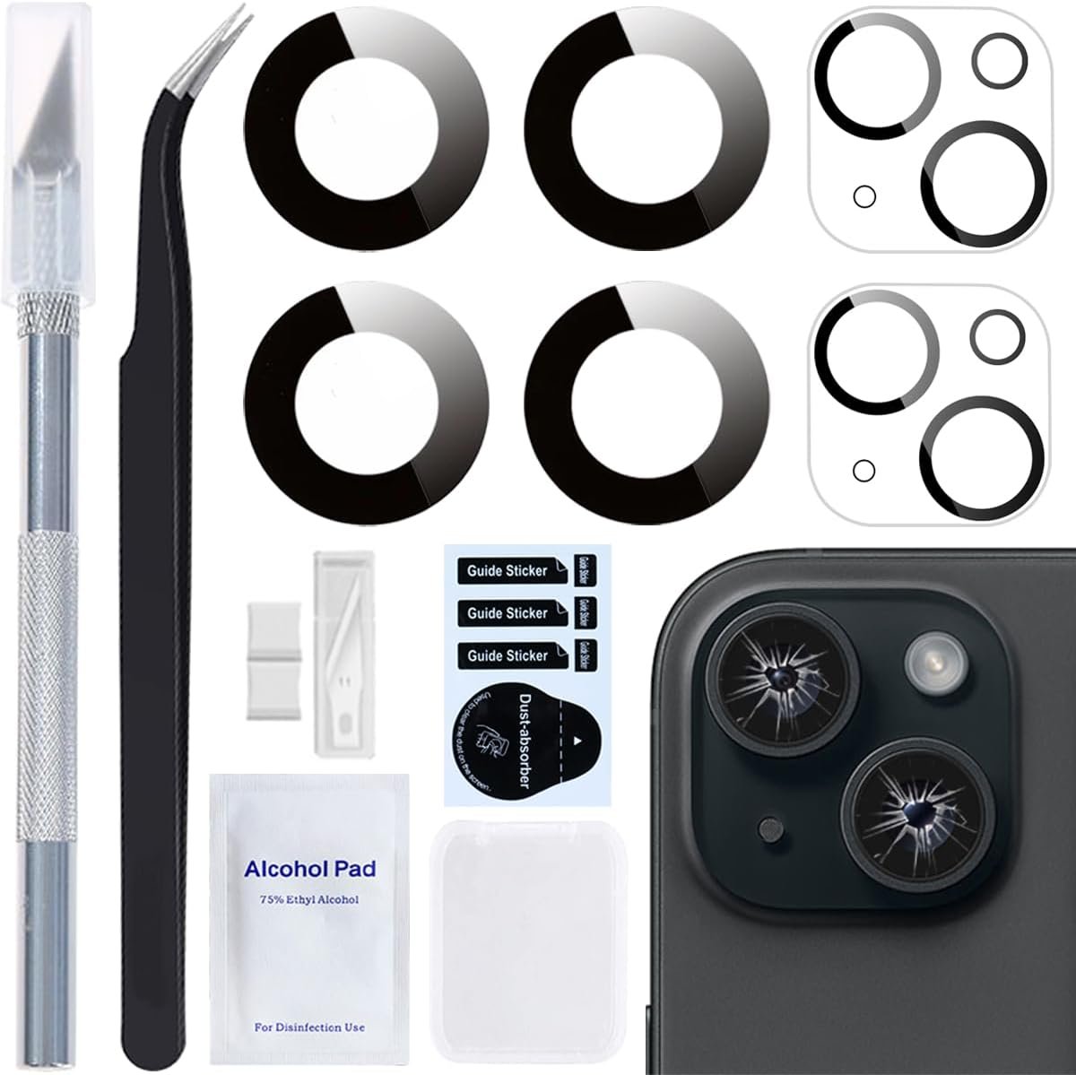 ZHUROUPU Plus リアバックカメラレンズガラス交換用 iPhone 15/15 専門修理ツール付き (2セット) iPhone 15 6.1インチ/15 Plus 6.7インチ用サファイアガラスレンズがプリインストールされています