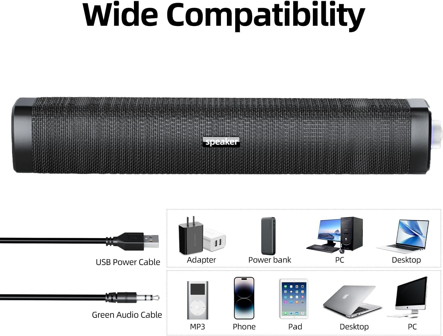 【ステレオでノイズレス】PCスピーカーはアップグレードされた2x3Wテクノロジーを使用してクリアなサウンドを提供します。サウンドバースピーカーは、屋内映画、ビデオ、音楽、ゲームを楽しむ際のリスニング体験を向上させます。
