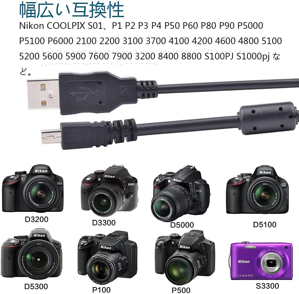 SQRMUEKI UC-E6 DSLRカメラ交換USBケーブルカメラカメラ転送データ同期充電器コード8ピンとNikon Coolpix S3700 S6500 S3500 S6600 S6300(1.5M)