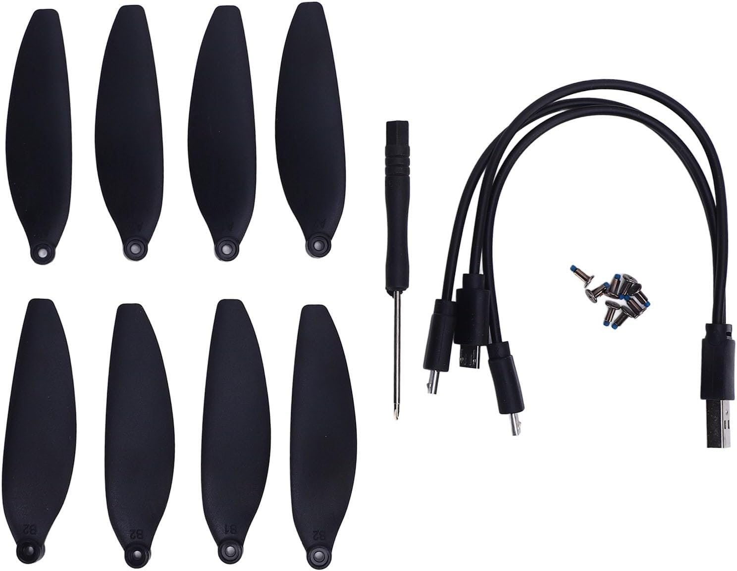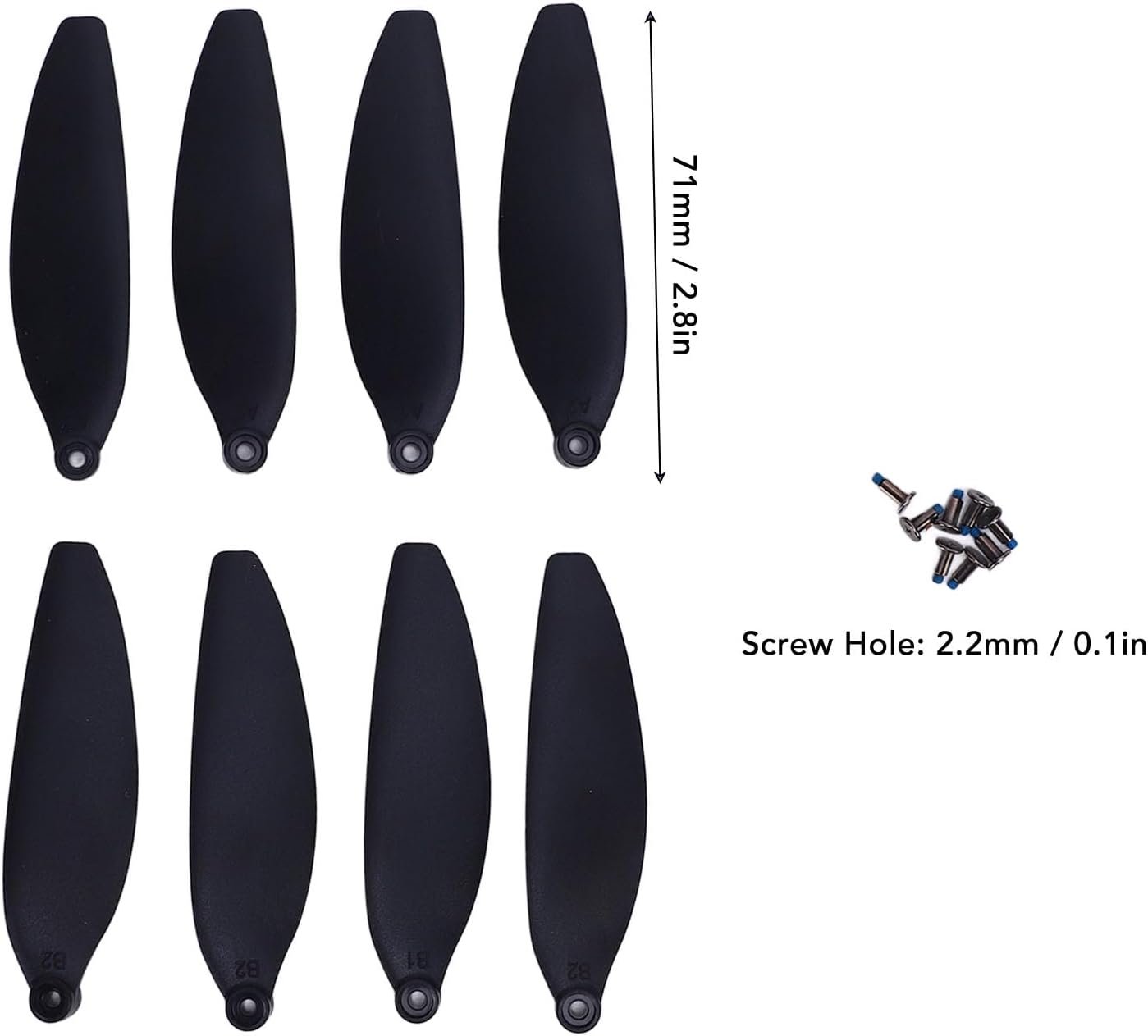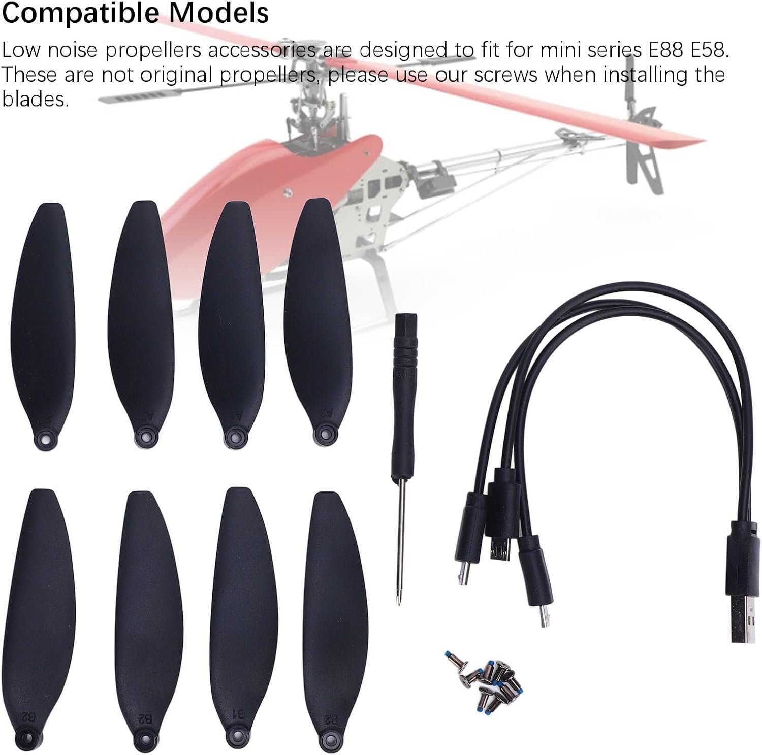 ミニドローンの低ノイズプロペラE88 E58静かなフライトブレード交換セットドライバーネジと耐久性のあるプラスチック7.1cm 8パック