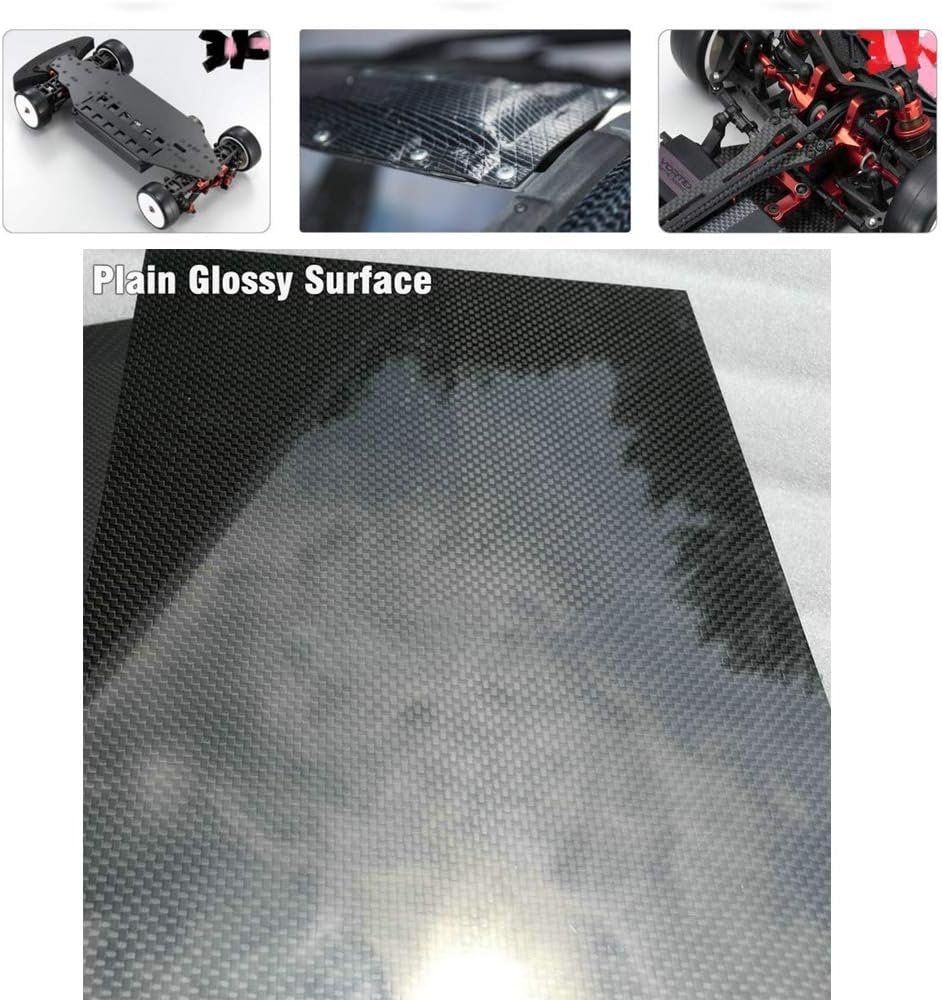 Xmrise 3k カーボンファイバーシートボード パネルボード 光沢のある表面 平織り織り ラミネート RC ドローン、250mm x 300mm x 1mm