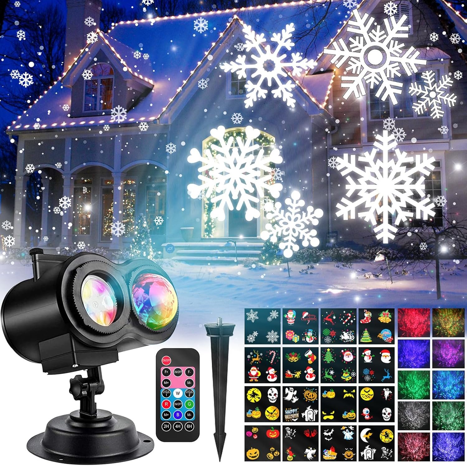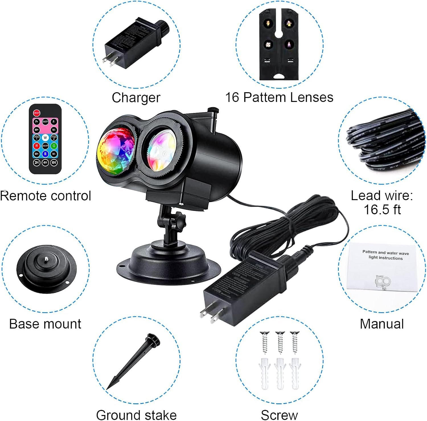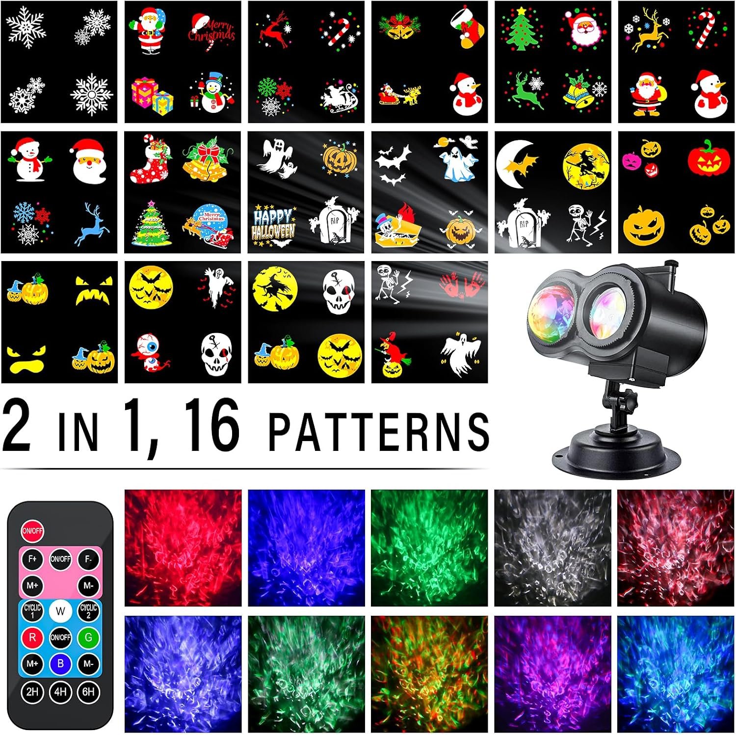 完璧なホリデーデコレーションライト:16種類のスライドパターン、さまざまな組み合わせ効果、屋内および屋外の装飾、クリスマス、ハロウィーン、家の装飾に適しています。寝室のウォーターウェーブナイトライトとして日常的に使用することもできます。