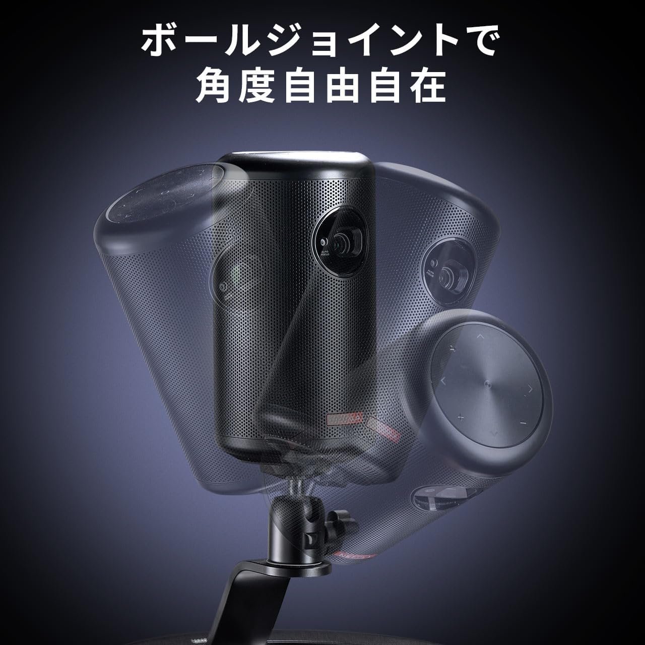 ボールジョイントにより水平360度、垂直90度の動きで投影角度を自由に調整できます。