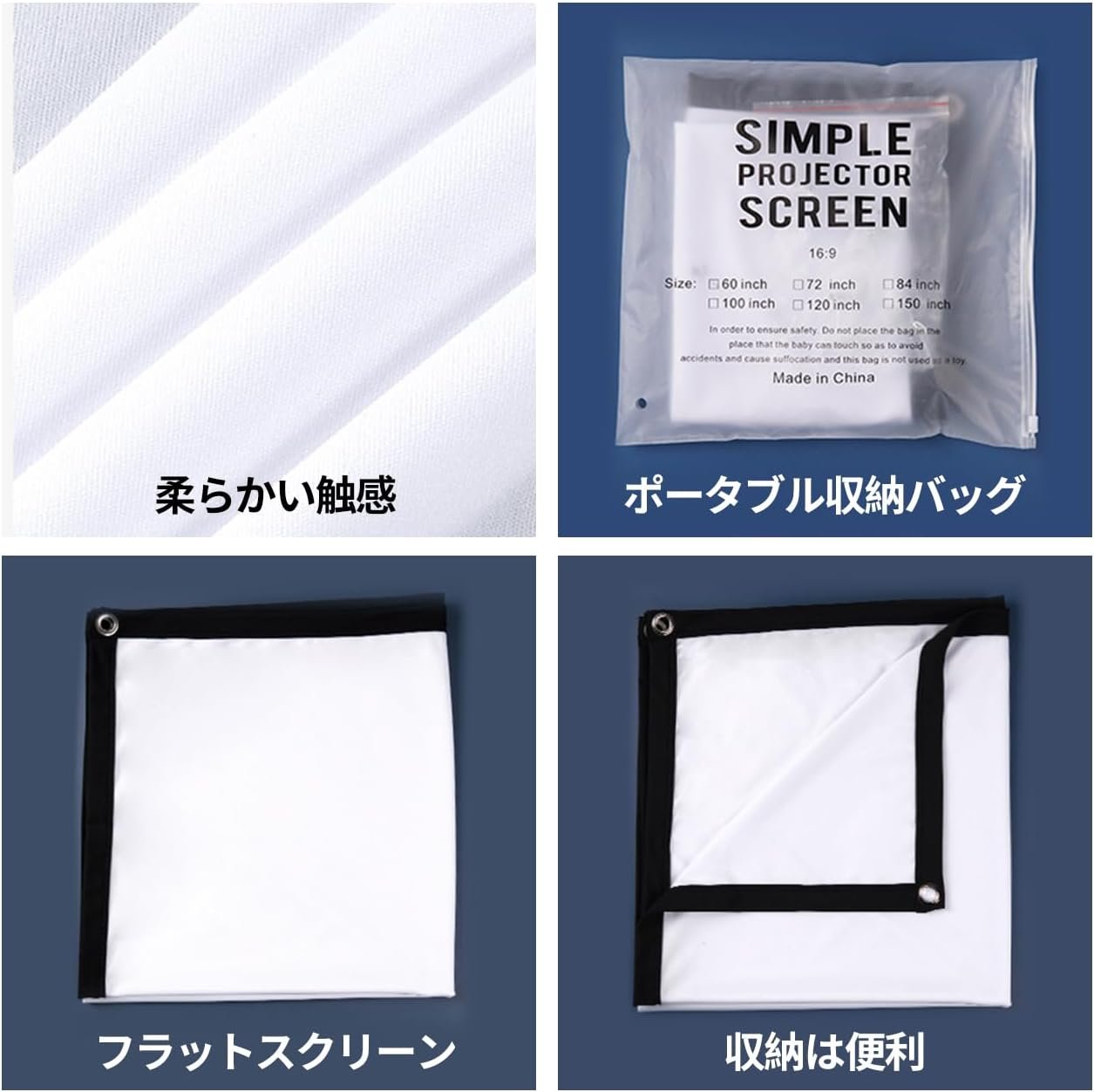 ✅【100インチの超大画面投影画面と100%しわ抵抗性ポリエステル材料】100インチ16:9大きな投影画面サイズでは、夜に家族と衝撃的な画像に浸ることができるので、どこでも映画の大画面を楽しむことができます。さらに、私たちの折り畳みスクリーンは、触るのが柔らかく柔らかく、折り畳まれたときに100%しわがない厚いポリエステル繊維材料で作られています。
