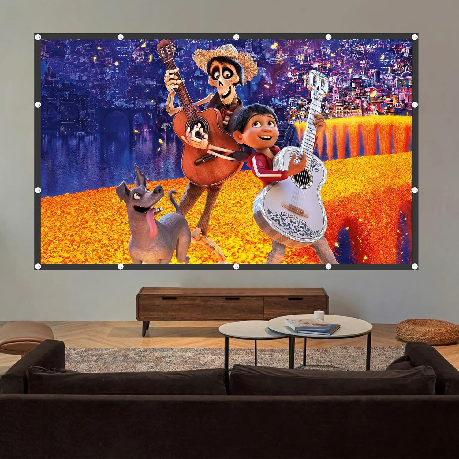 wideワイドアプリケーション】この100インチのプロジェクタースクリーンは、汎用性が高く、ホームシアター、教育、プレゼンテーション、講義、教室、ゲーム、キャンプ、水泳などの屋外アクティビティなどの屋内での使用に適しています。さらに、重要な記念日やフェスティバル(映画の夜、提案、クリスマス、感謝祭)に使用できます。お祝いの雰囲気を作り、家族、恋人、友人の良い思い出を作ることができます