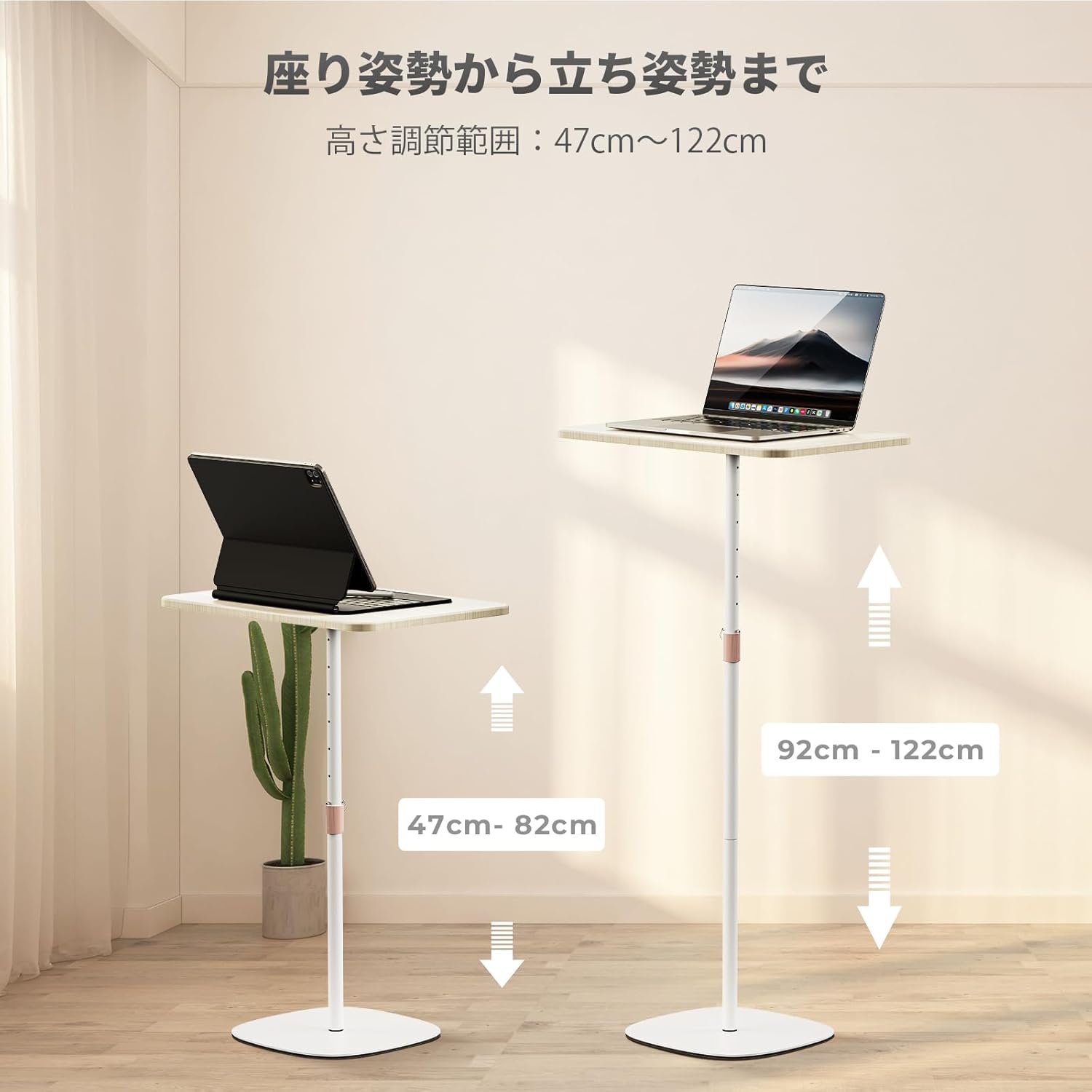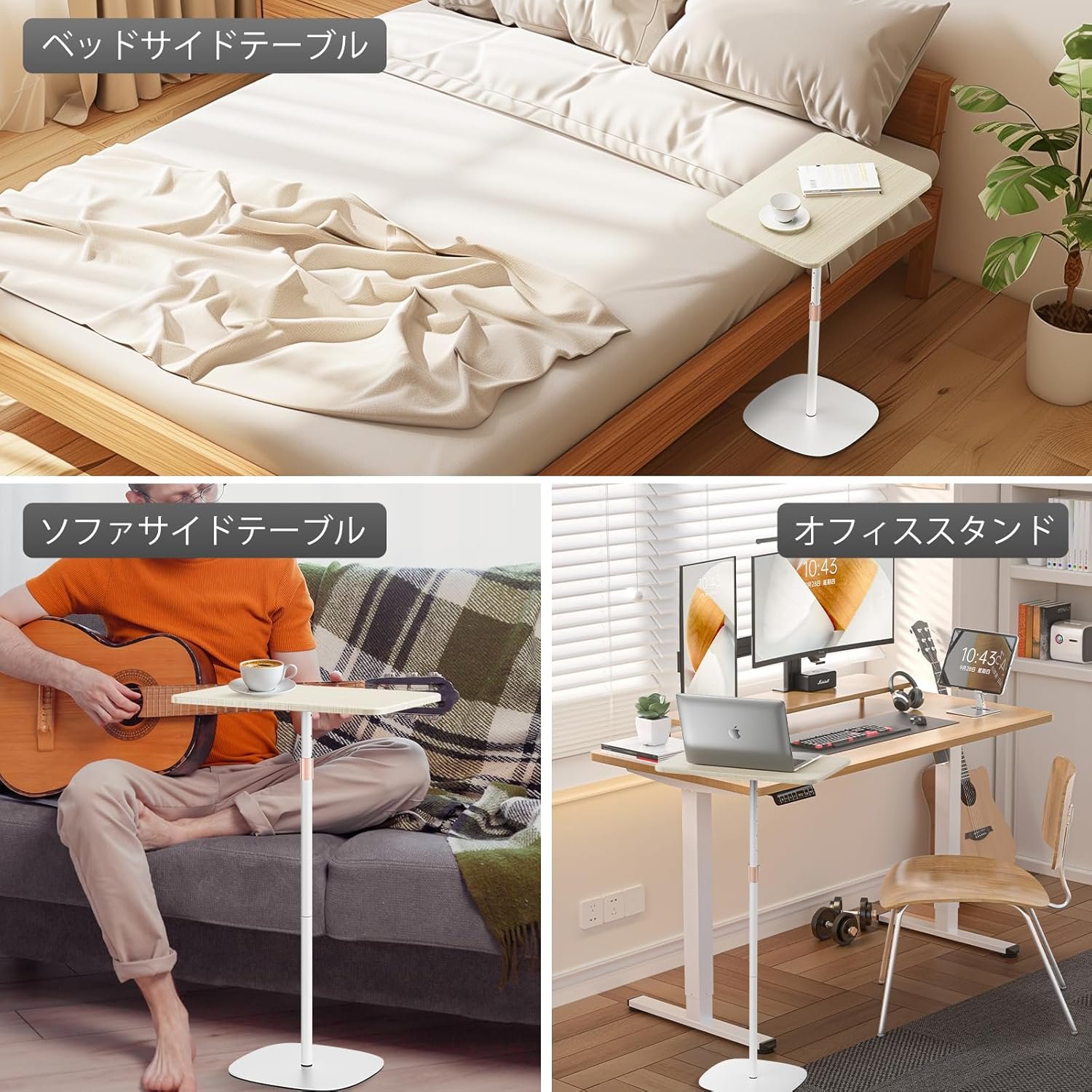 ノートパソコンスタンディングデスク サイドテーブル ベッドサイド ソファ 寝室テーブル 昇降デスク ハイテーブル プロジェクター台 高さ調整可能 おしゃれ 組立簡単 オフィス 会議室 寝室用 ホワイト