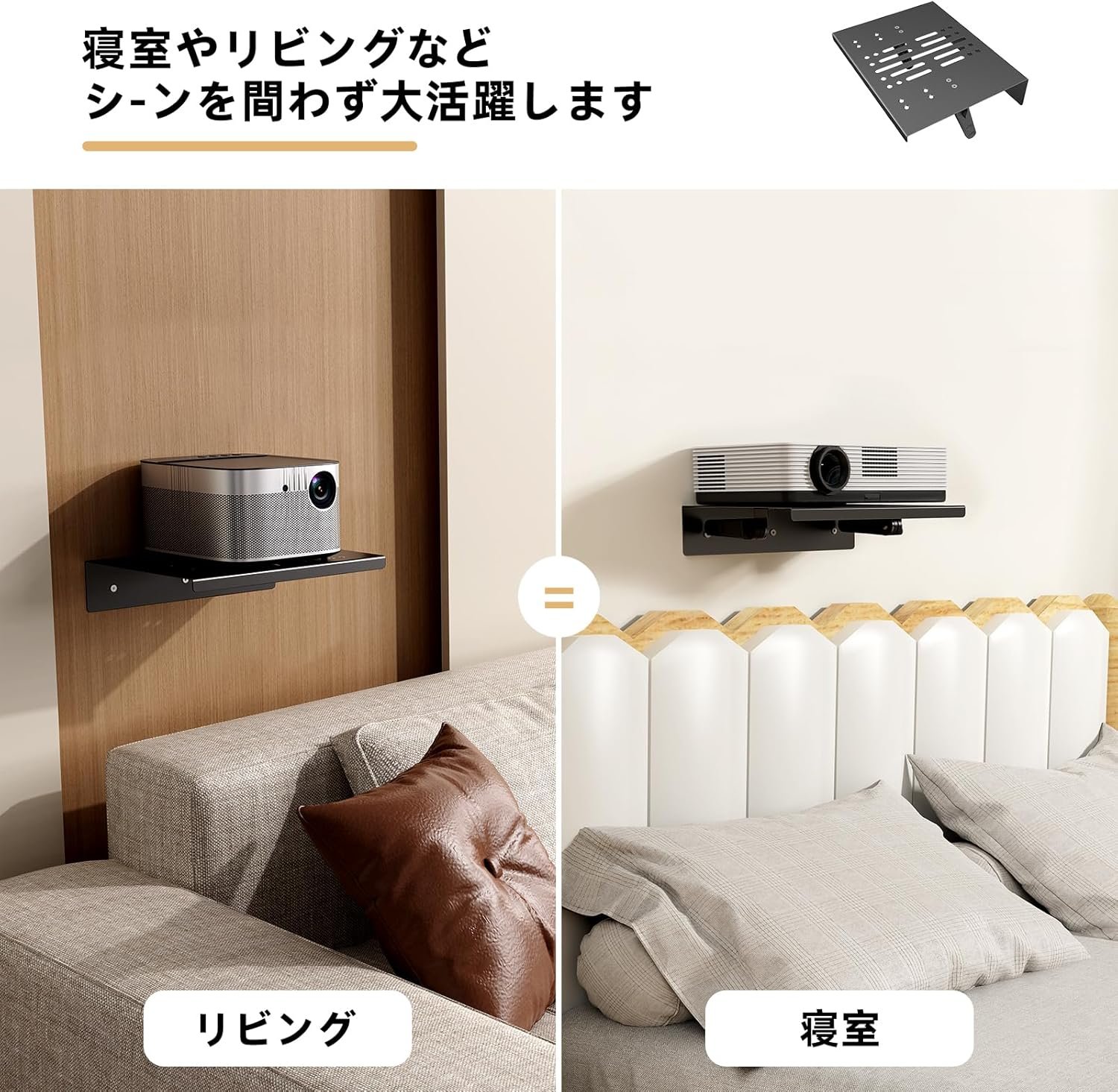 プロジェクタースタンド 3段階調節可能 壁掛け/穴なし 2WAY設置 耐荷重20kg 三角安定構造&放熱設計 壁面美観対応