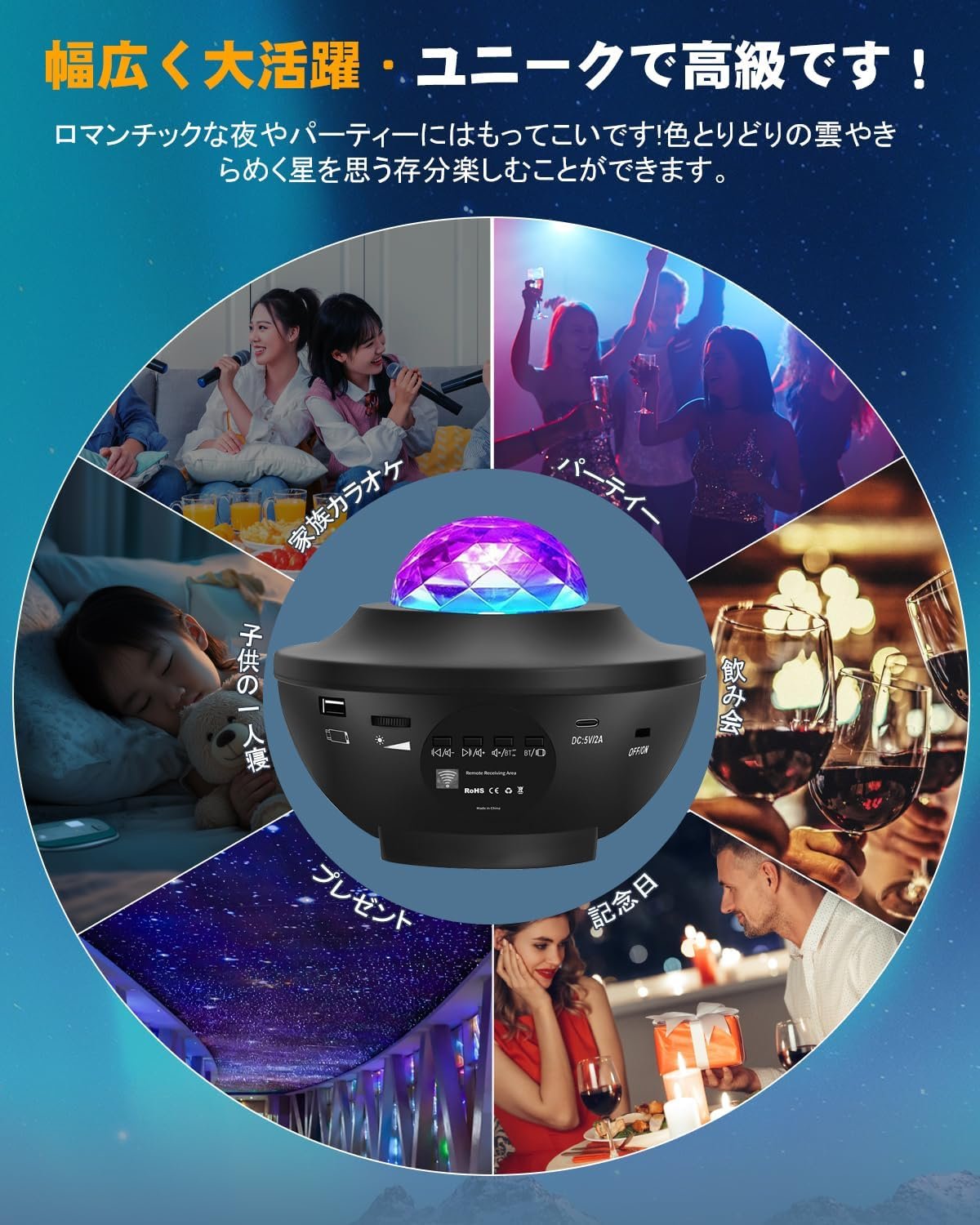 wride幅のアプリケーションと完璧なギフト】スターライトプロジェクターは、幻想の雰囲気を作り出し、子供の想像力と創造性を啓発します。スターライトプロジェクターは、インテリア装飾のためのナイトライトプロジェクターとしても使用できます