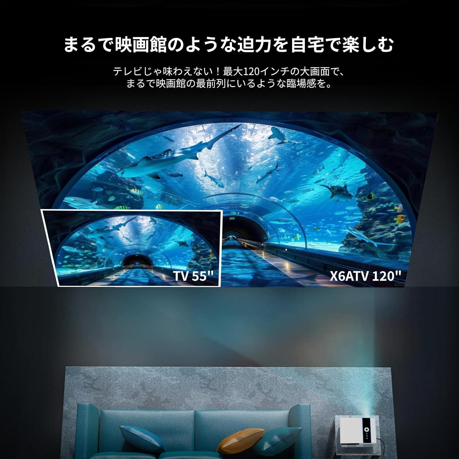 あなたはあなたの部屋でもっとスペースを使いたいですか。大画面で映画、スポーツゲーム、その他のゲームを見て楽しんでください。上記の価格に問題があったことはありますか?プロジェクターを持っているだけで、あなたの人生と雰囲気を変えることができます! Xnano X6ATVプロジェクターの新機能と改善された快適性:1。GTVシステムを装備:以前のモデルと比較して、より便利で快適です。 Netflixの使いやすさを大幅に向上させます。リモートコントロールのNetflixボタンを押して、公式アプリから直接飛行するだけです。さらに、音声アシスタントを使用して、プログラムまたはジャンルの名前を簡単に検索できます。 2。簡単なセットアップ:オートフォーカス、オートトラペゾイド歪み補正、スクリーンフィット、および自動障害物回避機能は、大騒ぎせずに強力なエンターテイメント体験を即座に浸します。 1回のタッチを備えた小さなスマートフォンの大きな画面:Wi-Fi接続を使用すると、スマートフォンまたはタブレットの画面を簡単にミラーリングできます。大画面で夜にオンラインビデオを見ることができます。使用していない場合でも、海辺などの旅行の画像を投影し、部屋全体に没入型の外観を作成できます。 Xnano X6ATVプロジェクターでエンターテイメントエクスペリエンスをさらに一歩進めてください!