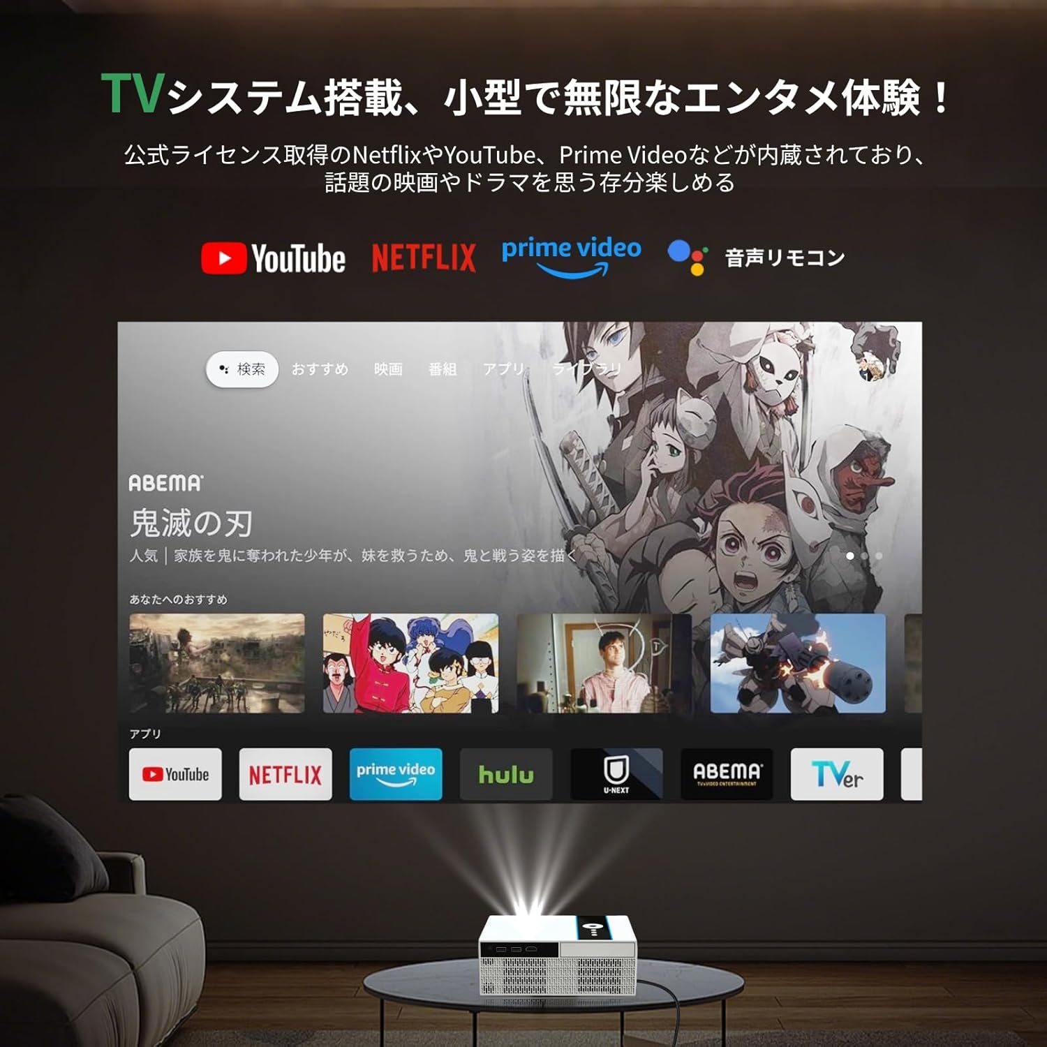 (公式Netflixライセンスと500,000を超える作品)Xnano X6ATVプロジェクターにはGTVが装備されているため、Wi-Fiに接続するだけで印象的なビデオエクスペリエンスをすぐに開始できます。この公式にライセンスされたホームプロジェクターは、Netflix、YouTube、Primeビデオなどの人気のあるアプリにアクセスする準備ができています。 1つのリモコンを使用すると、ホームシアターの世界に没頭しているように感じることができます。大規模な40〜200インチの画面で、映画、アニメーション、ゲームなどから500,000を超えるコンテンツをお楽しみください。お気に入りの映画やショーを常に保管してください!さらに、表示したいものをすばやく検索できる音声制御機能が装備されています。誰でも小さな子供から機械が好きではない人まで簡単にそれを使用できます