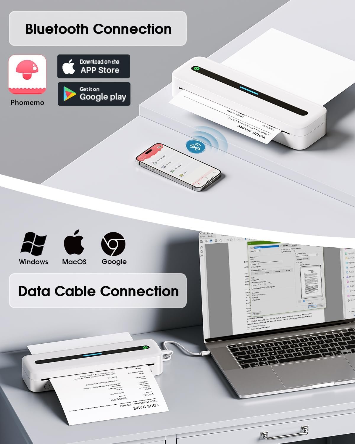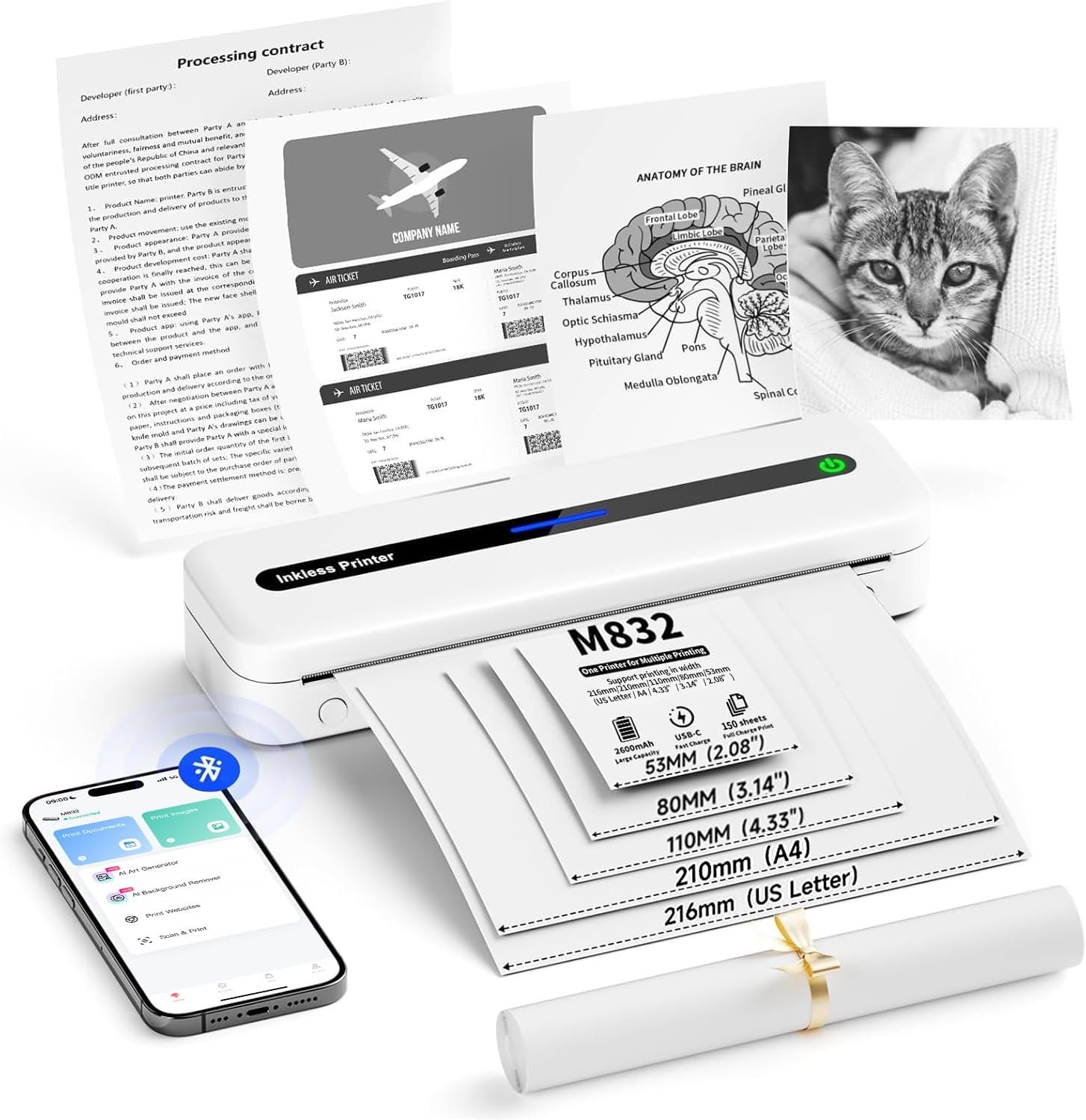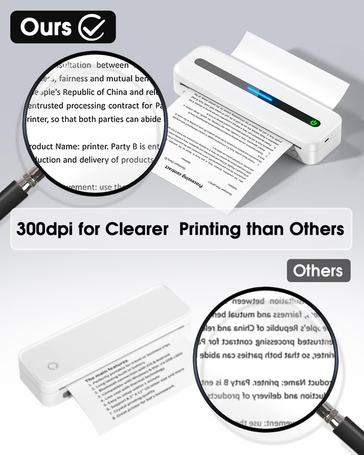 イタリM832-A4モバイルプリンター300 DPIアップグレードミニプリンターポータブルプリンターコピー機ホームポータブルプリンター熱伝達プリンターホームおよびオフィスポータブルプリンターコピー8.26 “X11.69” A4サーマル
