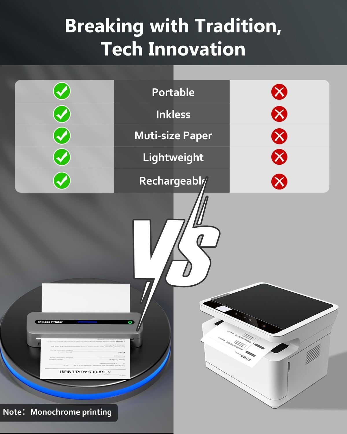 ♥小さくてポータブル:ポータブルプリンターのコンパクトな構造は、従来のプリンターよりもサイズと重量が80%小さくなるため、片手で快適で、いつでも持ち運びが簡単です。領収書、試験書類、声明、契約、および旅行、会議、ホームオフィスなど、フィールドなどの印刷を移動する必要がある場所でも便利です