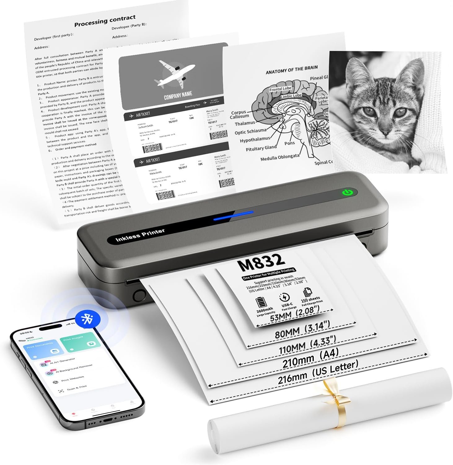 イタリM832-A4モバイルプリンター300 DPIアップグレードミニプリンターポータブルプリンターコピー機ホームポータブルプリンター熱伝達プリンターホームおよびオフィスポータブルプリンターコピー8.26 “X11.69” A4サーマル