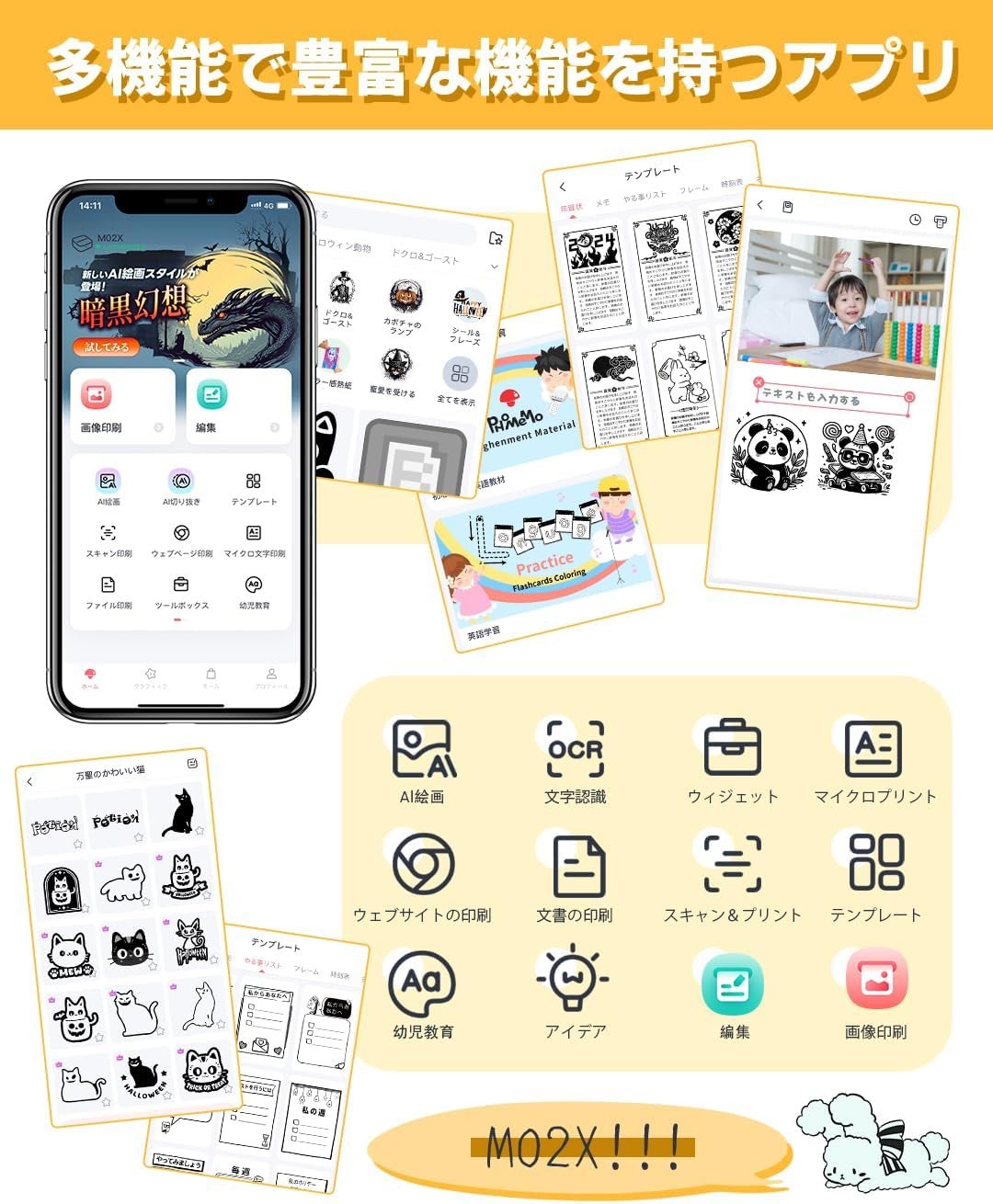 この多機能モバイルプリンターは、写真、ノートブック、スティッキーノート、食料品リスト、研究と会議のメモ、ウェブページ、QRコード、ドキュメントなどを印刷できます。
