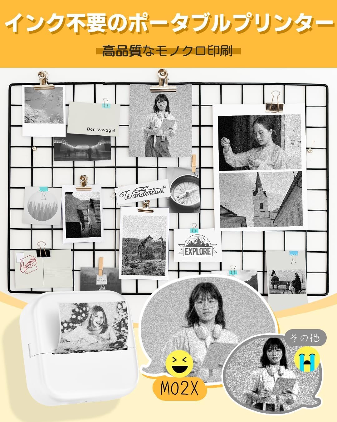 サーマルプリンター、M02X、ミニプリンター、ポータブルモバイルプリンター、Bluetooth接続、ミニフォトプリンター、ポケットプリンター、ポータブルフォトプリンター、ステッカープリンター、スタディノートブック、ノート、メモ、写真、写真