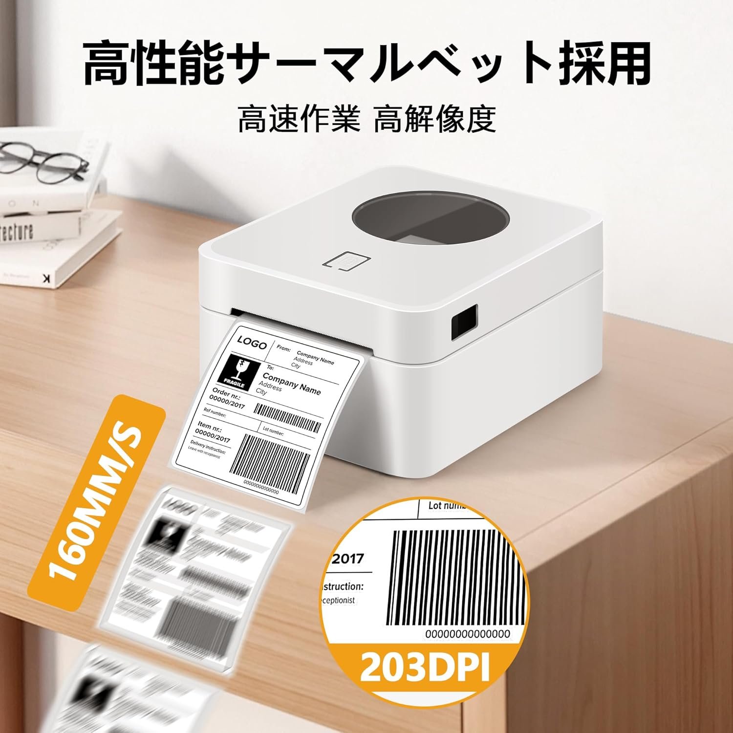 サーマルラベルプリンター、スマートフォン互換性、PC互換、ラベルライター、郵送ラベルプリンター、ミニプリンター、値札プリンター、コマーシャルプリンター、A6サイズ、Bluetooth USB、LAN互換、ラベル