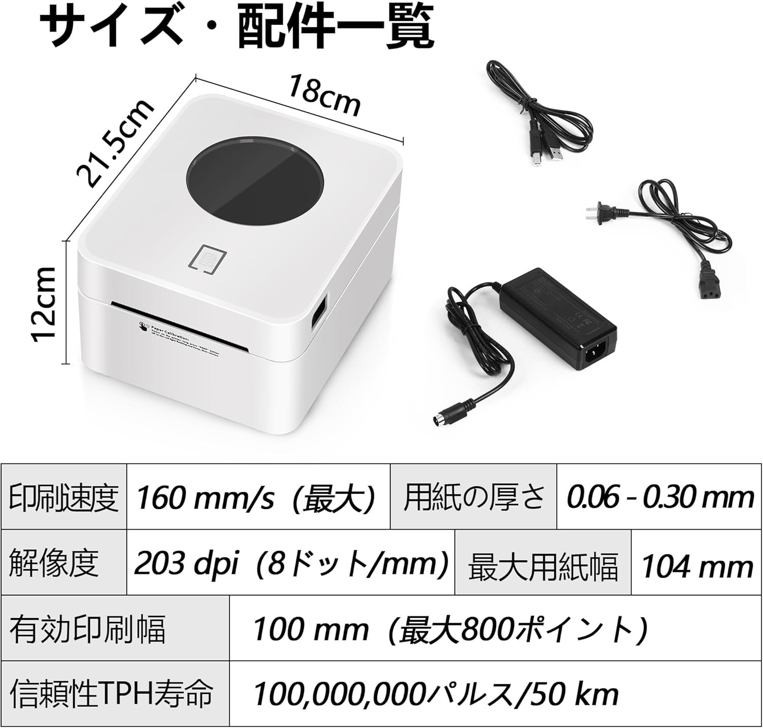 仕様とマルチシステムの互換性:製品サイズ:8.5 x 7.1 x 4.7インチ(215 x 180 x 120 mm);白;パワーアダプター、取扱説明書(英語は保証されていない)、USBデータケーブル。有効な印刷幅は25-100mm、最大用紙幅は104mm、紙の厚さは0.06-0.30mmです。 Windows、Android、およびiOSシステムと互換性があります。簡単なセットアップと直感的な操作ラベルプリンターは、作業プロセスに必要なものになります