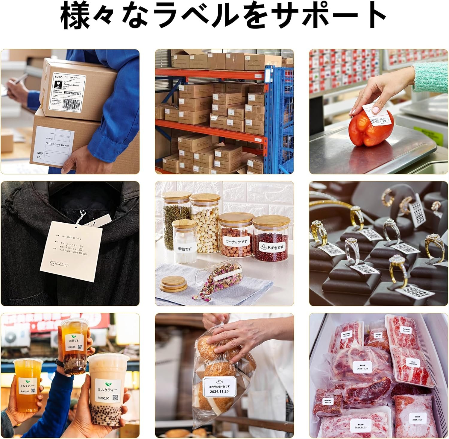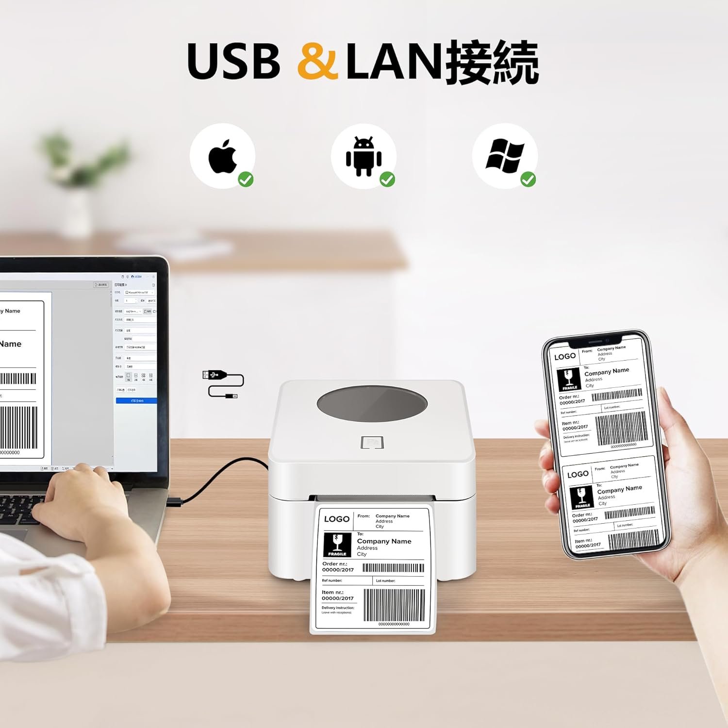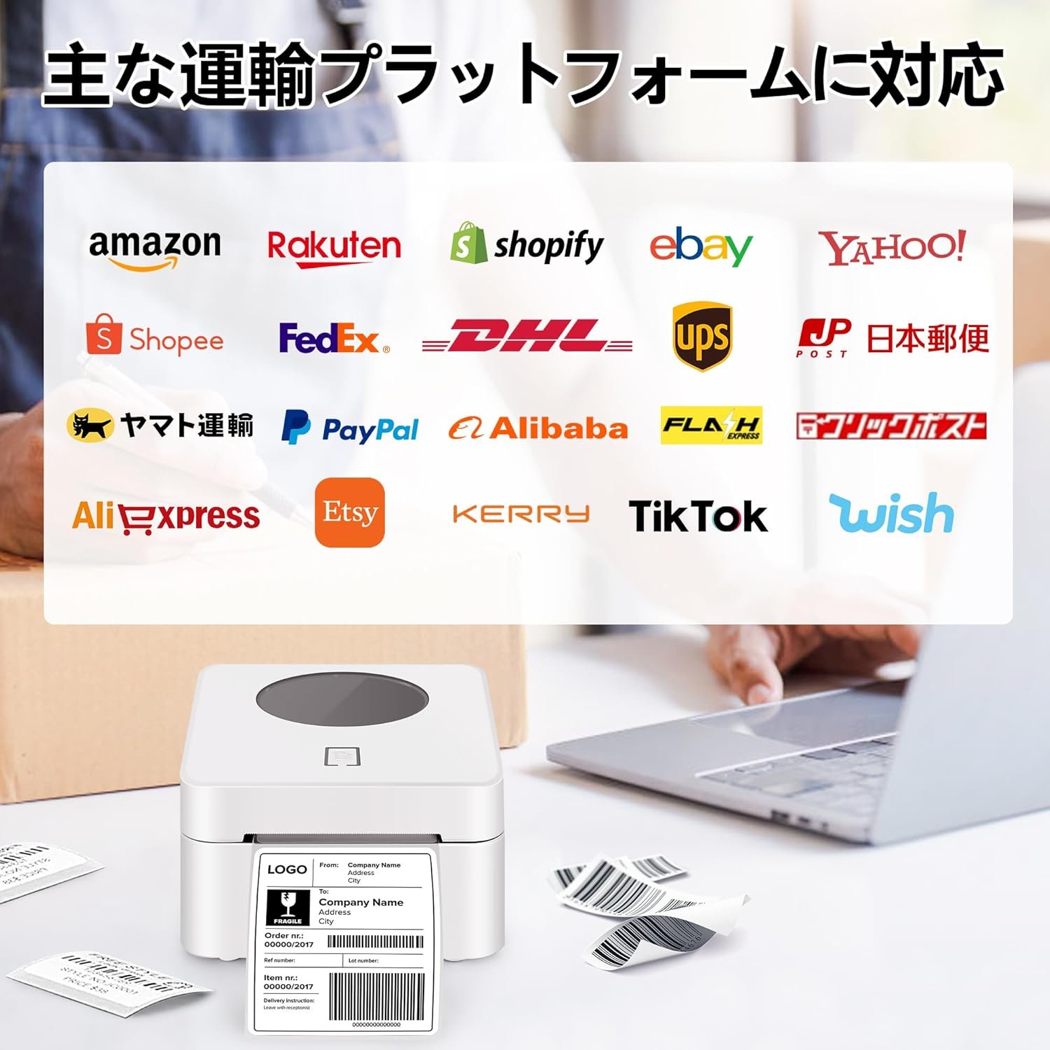 wide幅の広いアプリケーションopersionこの配送ラベルプリンターは、ほとんどの配送プラットフォームとeコマースプラットフォームと互換性があり、スーパーマーケット、小売店、アパレルショップ、郵送産業、さらには自宅やオフィスなど、さまざまな機会に使用できます。 Amazon、Shopify、Etsy、USPSなどのすべての主要なプラットフォームと互換性があり、請求書、倉庫ラベル、FBAラベル、食品ラベル、衣料品ラベル、その他のラベルの印刷に使用できます。