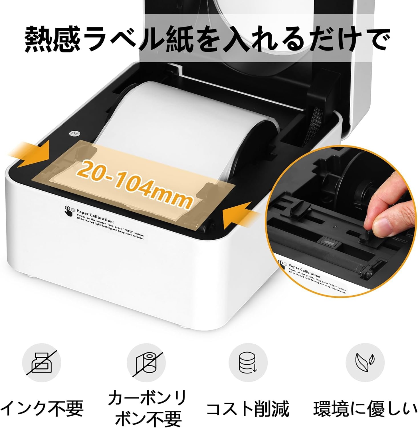 熱検知印刷、低コスト:熱敏感なプリンターは、熱敏感な紙を使用して、印刷ヘッドの熱放散を制御して画像とテキストを形成します。この印刷方法には、インクやリボンなどの消耗品は必要ありません。また、1回の熱敏感な紙のみが、低コストの持続可能で鮮やかな印刷結果を提供します。また、消耗品の交換の手間を完全に排除します。このプリンターは、特にパッケージングと輸送に最適なラベルプリンターです