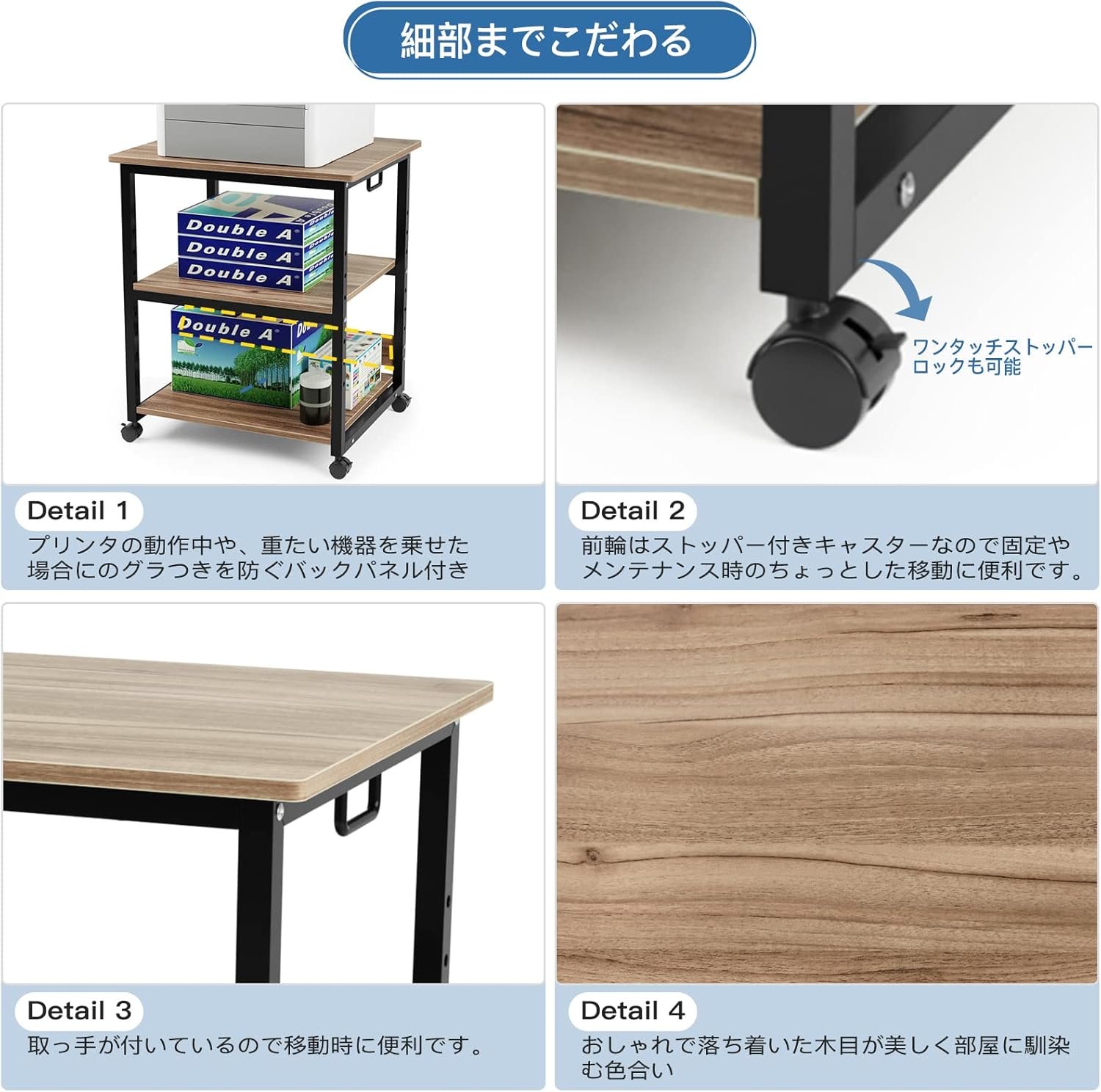 細部への注意:プリンターが走っているときや重い機器が装填されているときにぐらつくのを防ぐためのバックパネルが付属しています。前輪はストッパーを備えたキャスターであるため、固定とメンテナンス中の迅速な動きに便利です。 ★便利な交通手段が付属しています。 ★色:フレームの色は、贅沢のためにも黒です。現代のライフスタイルに溶け込みます