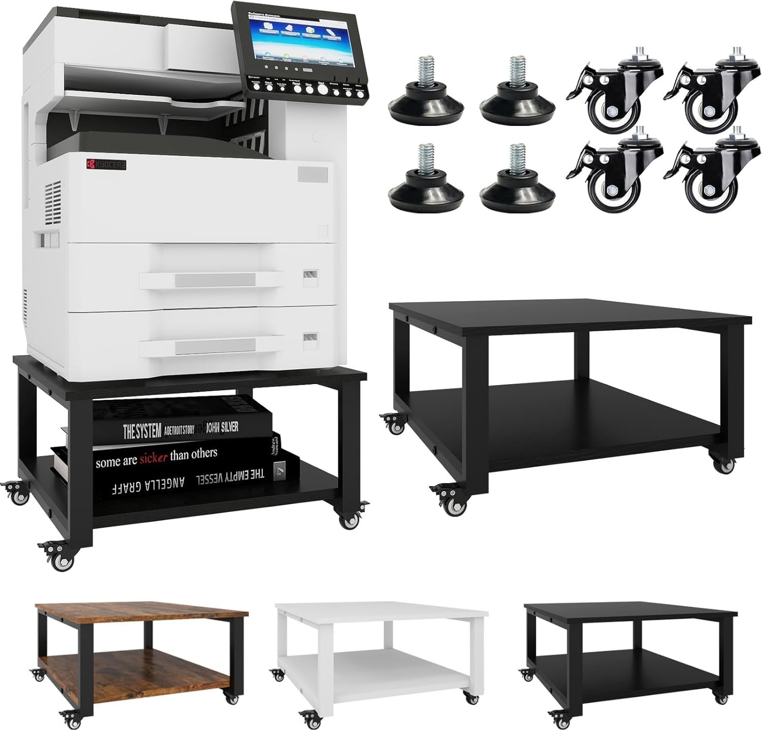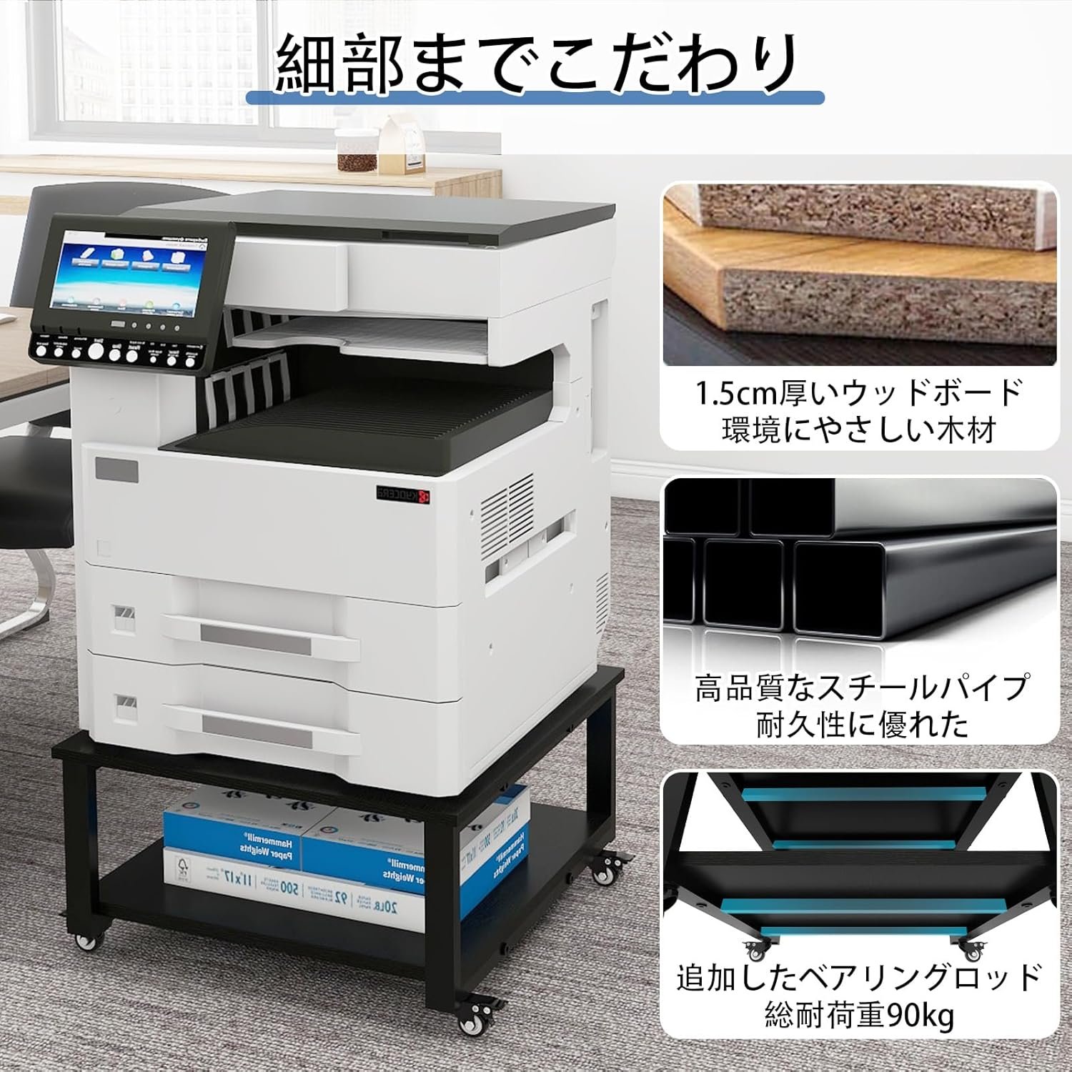 パンシア2層プリンターベース、幅23.6インチ(60 cm)、深さ23.6インチ(60 cm)、高さ11.8インチ(30 cm)、キャスター付きワゴン、大きなプリンター、ストレージスタンド、スペース節約、プリンターの棚、机の下のプリンター棚