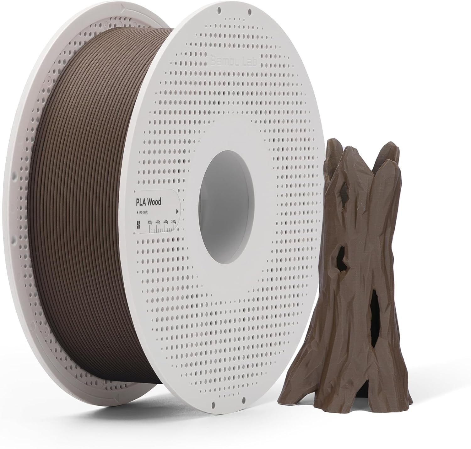 Bambu Lab PLA Wood 3D Printerフィラメント、1.75mm、木材PLA、木材繊維、マット仕上げ、他のPLAと完全に互換性があり、AMS互換性、1kgの再利用可能なスプール、ブラックウォルナット