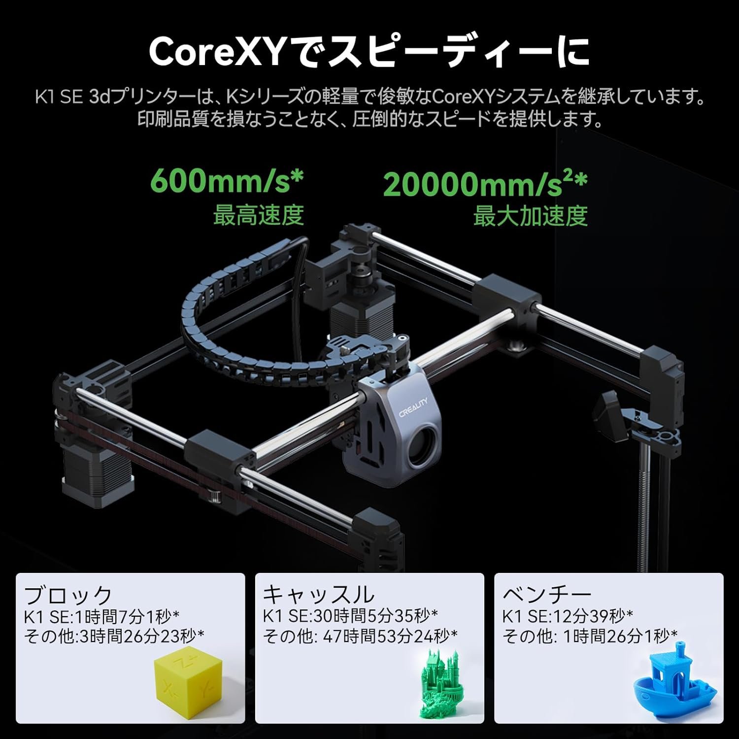 【12X FAST WITH COREXY 】K1 SE 3D printer inherits the lightweight and superior CoreXY system of the K1 series. It has a maximum speed of 600mm/s and acceleration of 20,000 mm/s², so you can print at high speed while maintaining print quality. Print 12x faster than traditional 3D printers