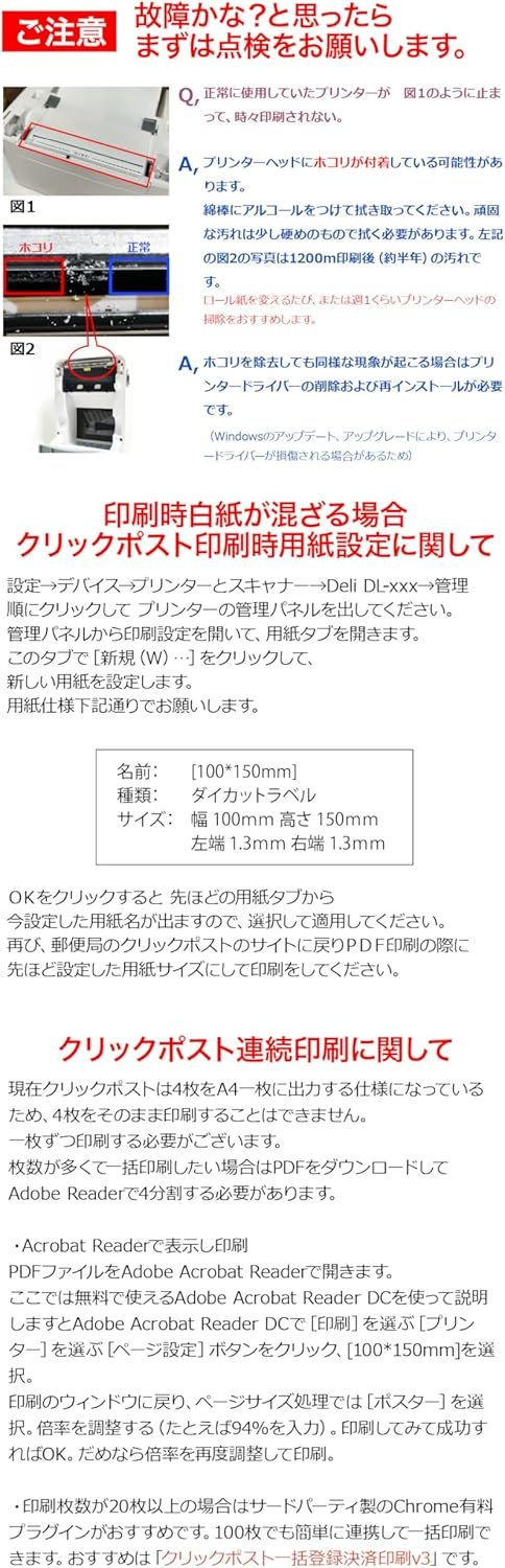★デリサーマルプリンター互換ラベル幅30-108mm。フルオープントップデザインにより、レーベルの交換が簡単で、コンパクトでかわいいデザインと高性能エンジンを実現し、デリDL-730C(新しい)は、製品マーキング、出荷、小売、その他のラベル付けアプリケーションに理想的なプリンターです。日本と互換性のあるポストポスト、ヤマトサーマルシール(Windowsのみと互換性のあるB2クラウドのみ)、配達サービス(支払い)、配信サービスコンパクト、ネコポス。 (YuprirまたはKuroneko Yamatoの設定に質問がある場合は、お問い合わせください。)